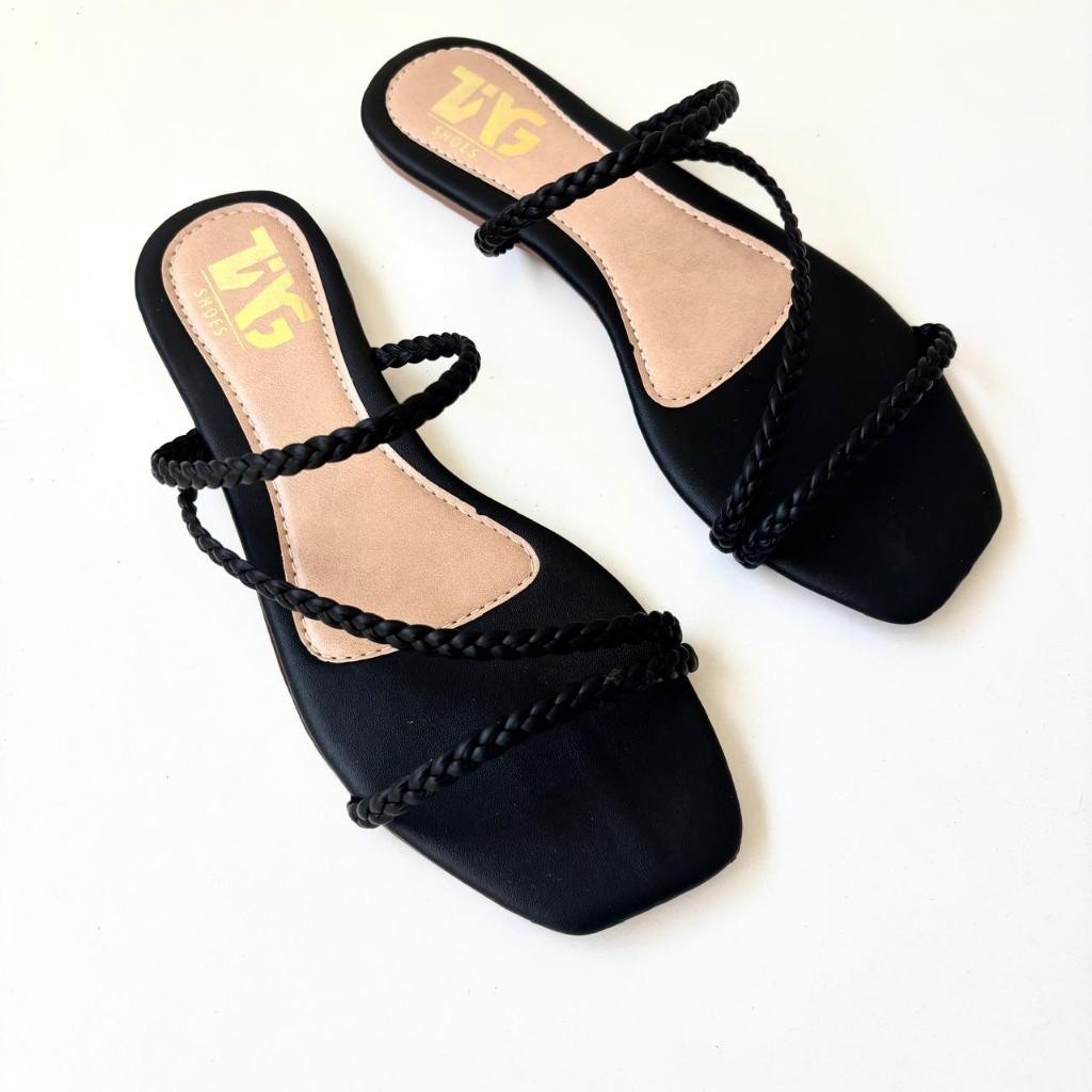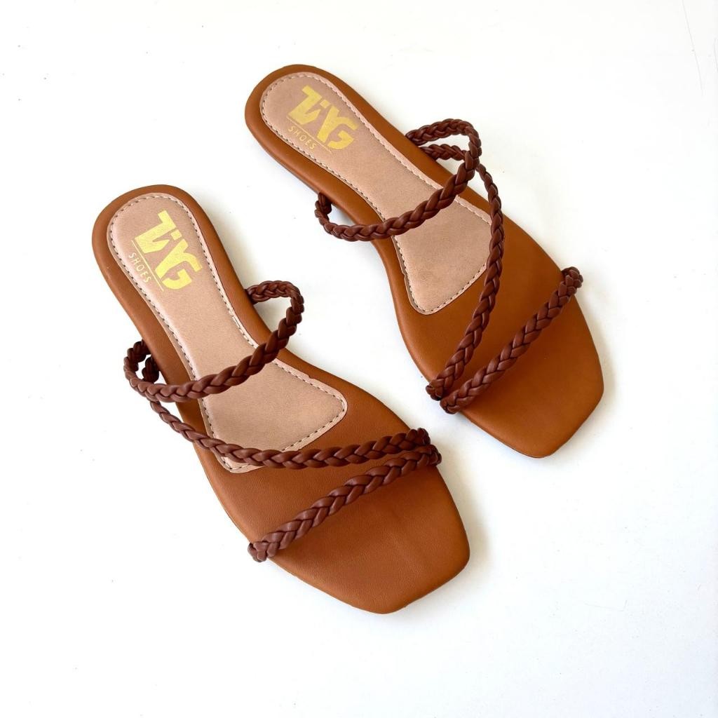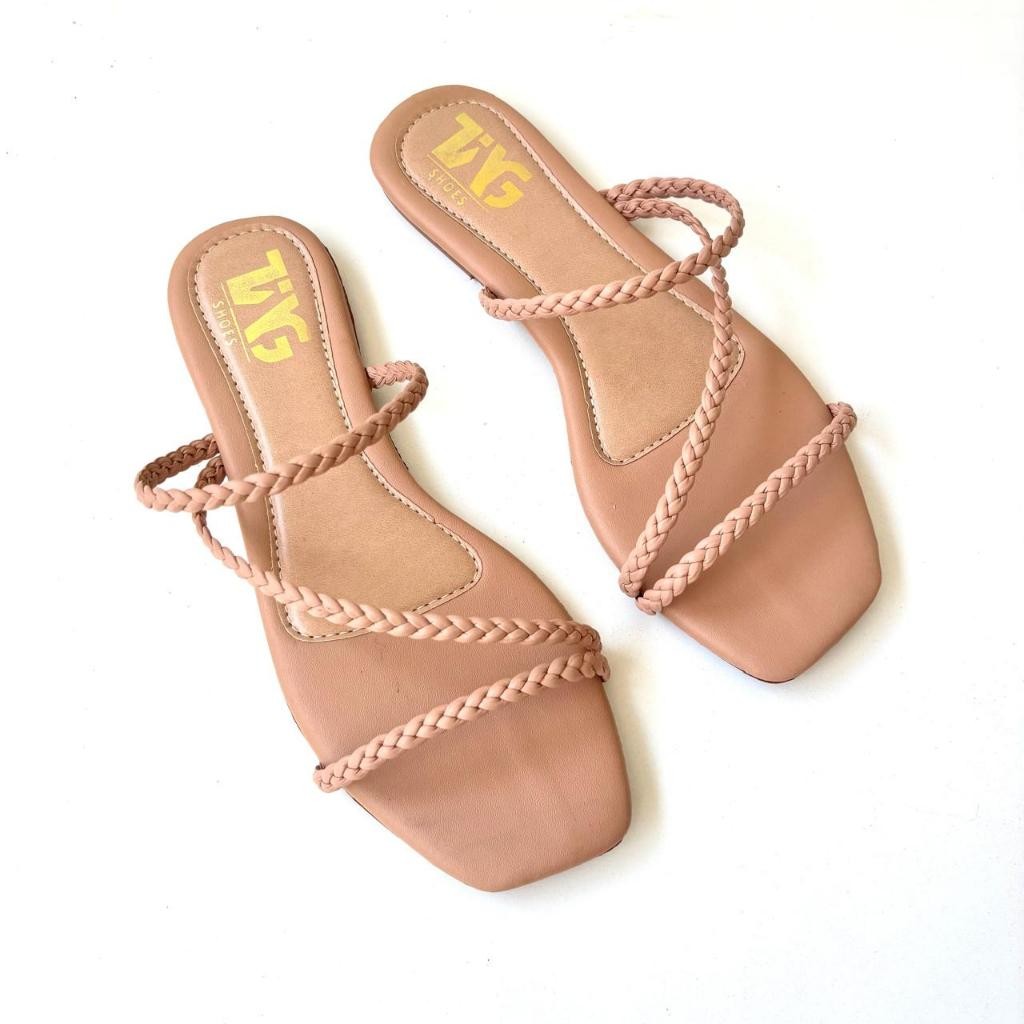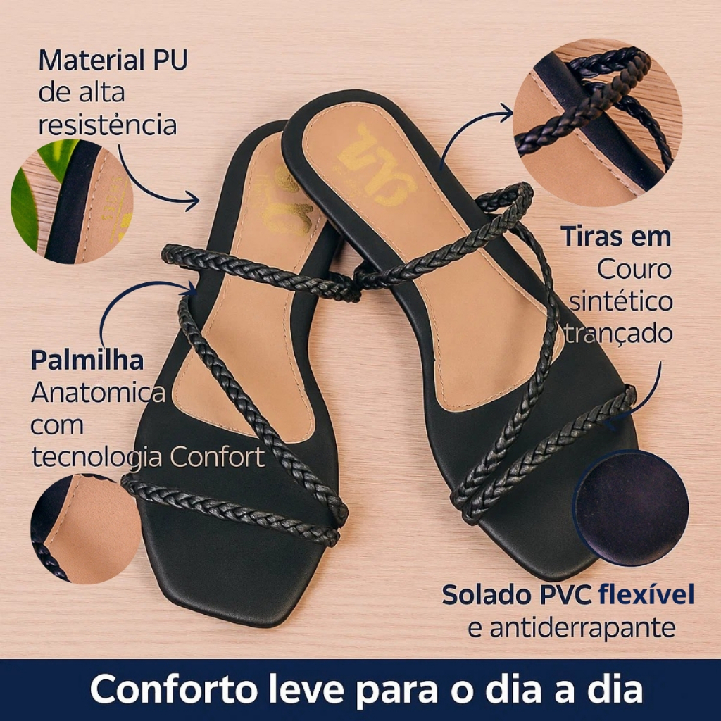 Sandália Feminina Tira Trançada Rasteirinha Brilho Tendência Miss Moda
