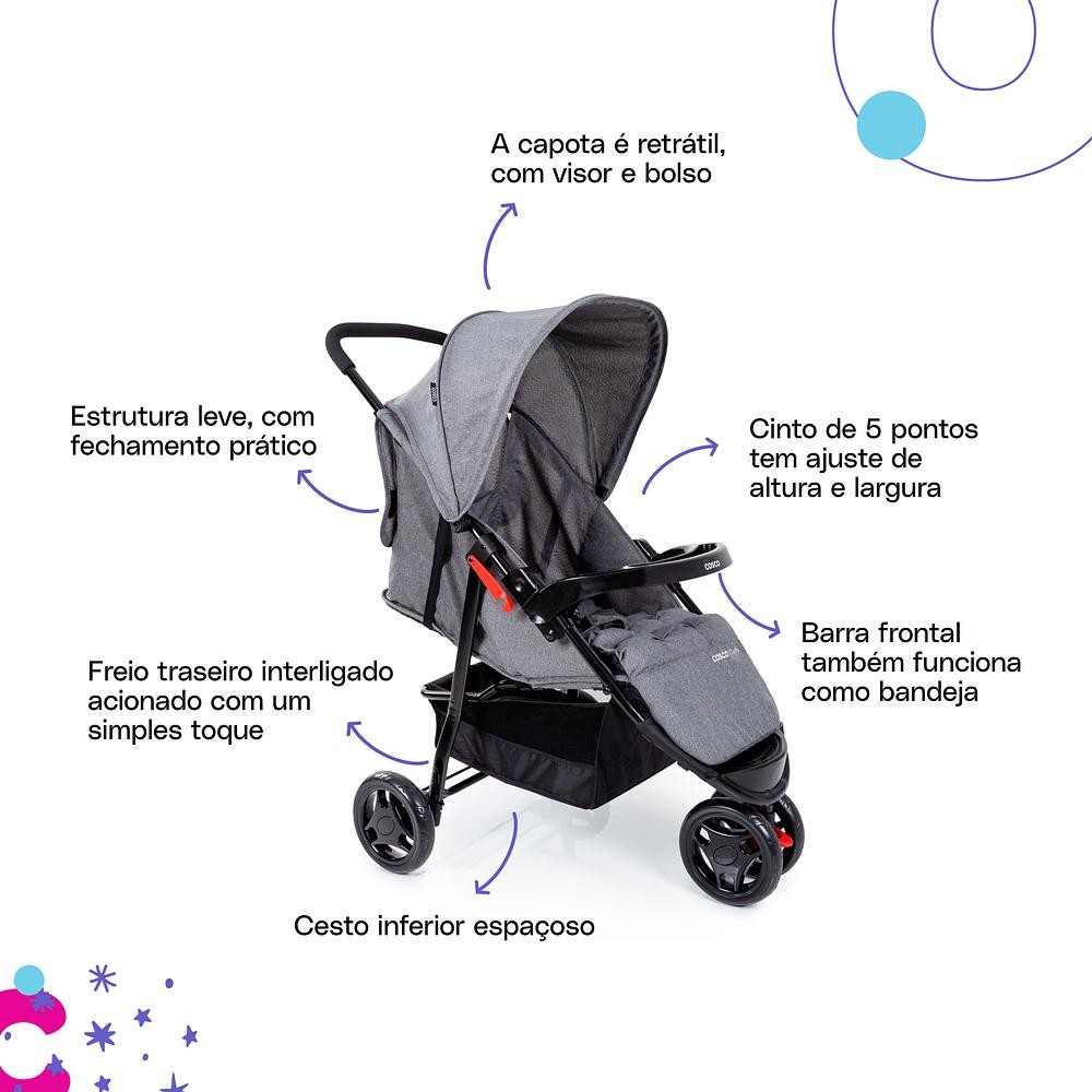 Carrinho de Bebê Com Bebê Conforto e Base Travel System Trio Toffy Cosco Kids Cinza