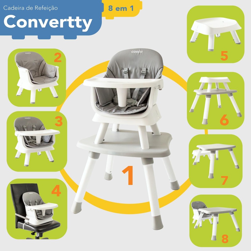 Cadeira de Refeição Convertty 8 em 1 - Cosco Kids Cinza