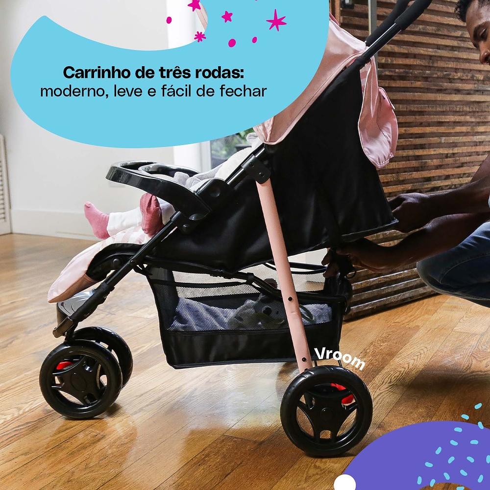 Carrinho de Bebê Cosco Kids Toffy Rosa Listras 0-15kg