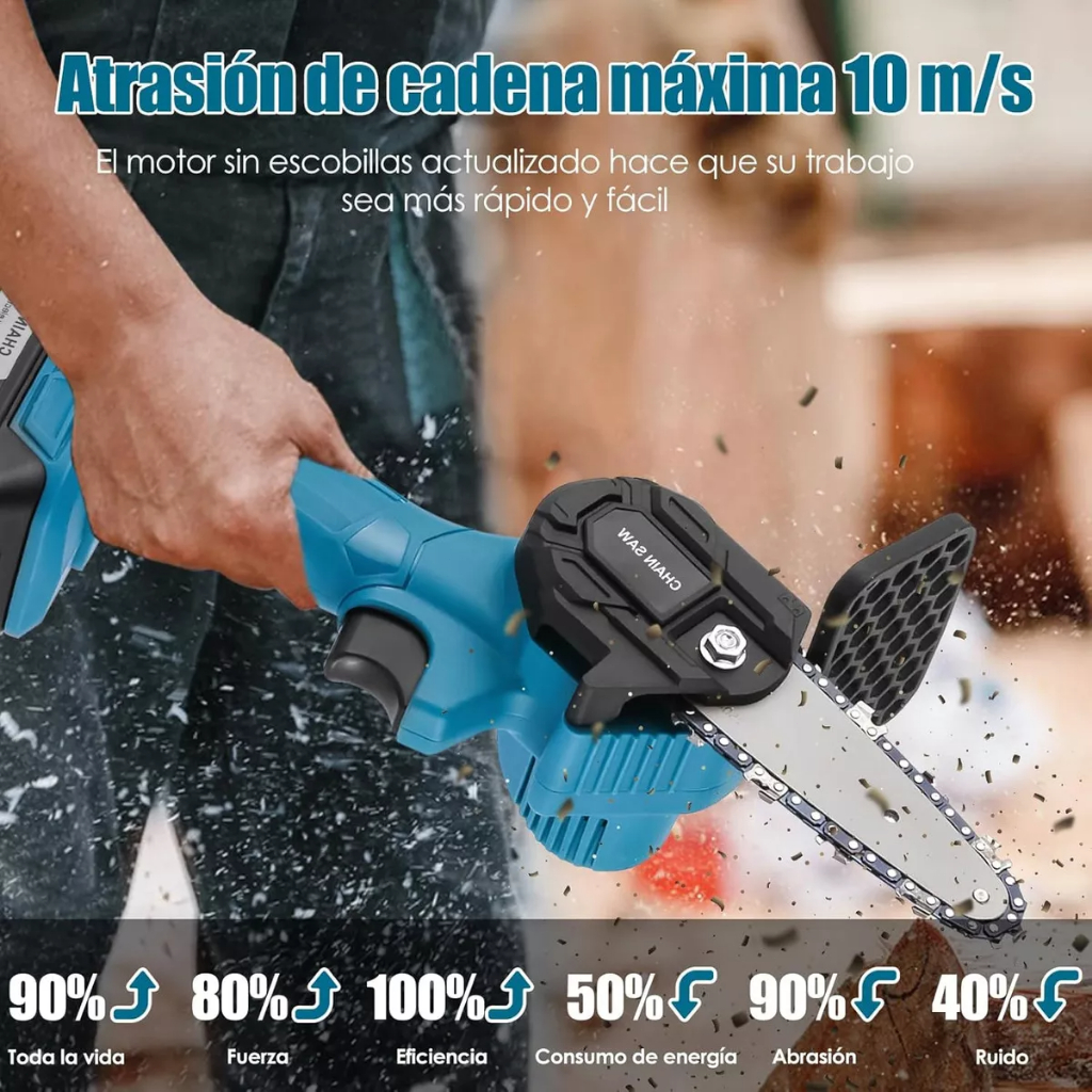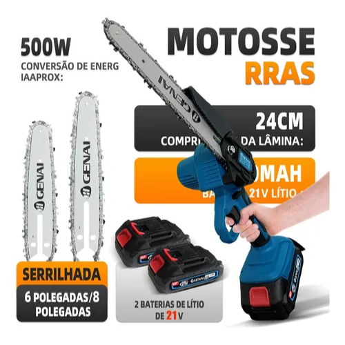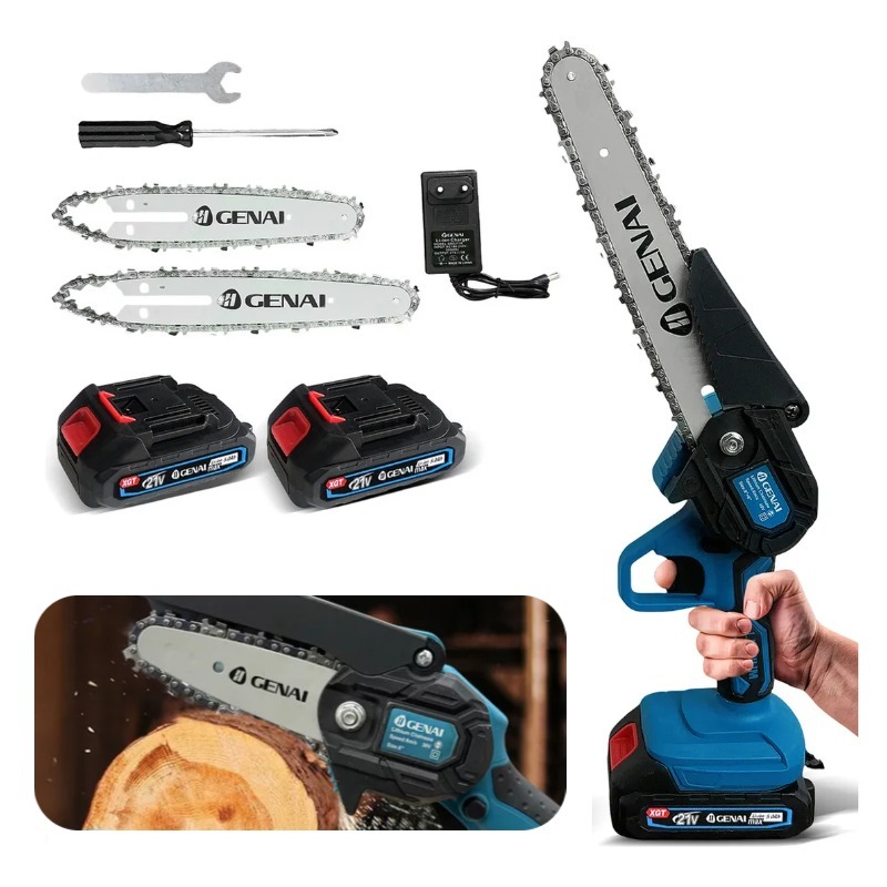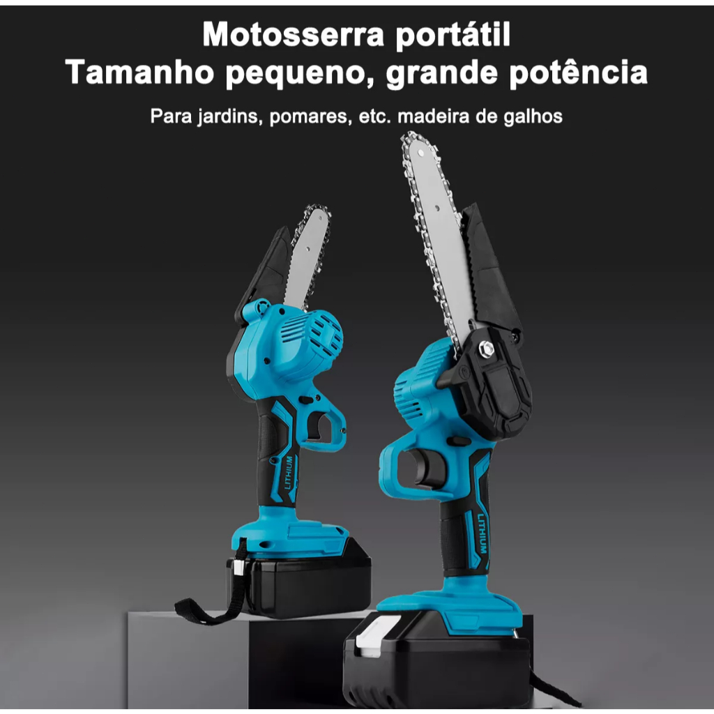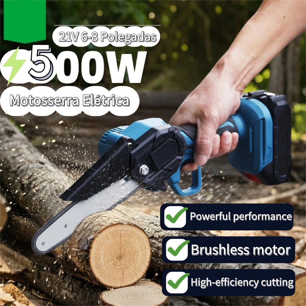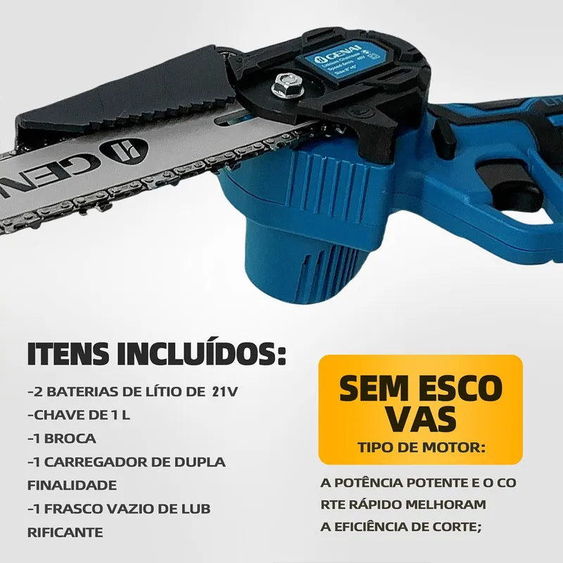 21V Motosserra Eletrica Potente 2 Baterias Recarregavel Sem Fio Madeira Galho