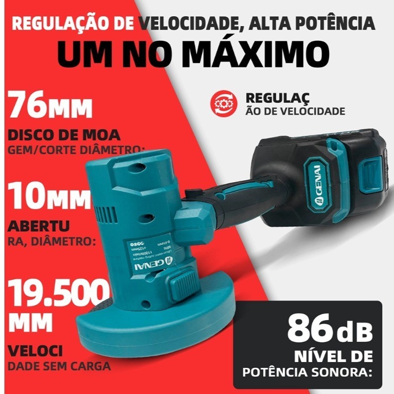 76mm Esmerilhadeira Lixadeira Sem Fio Portátil Serra Mármore 2 Bateria 36V-EMLL