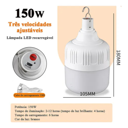 40w/100w Lâmpada Led emergência Lanterna Usb Recarregável Luz Camping Com Gancho Economia de energia