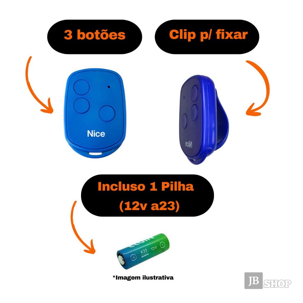 Kit 10 Controles Remoto para Nice | Linear 3 Teclas Azul 3tb