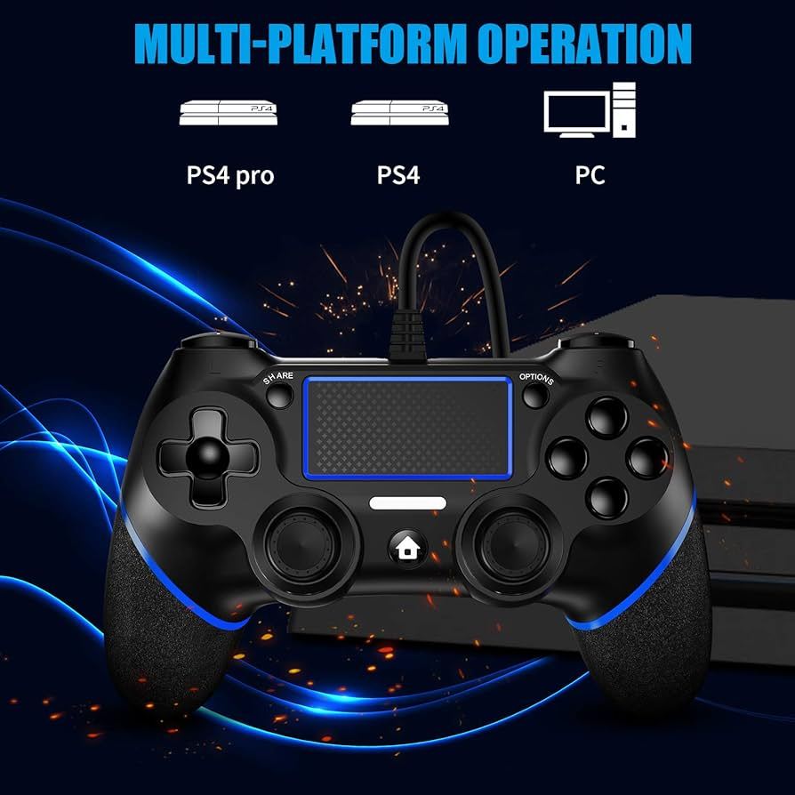 Controle Gamer Profissional USB Com Fio Compatível PS4 e PC Knup KP-GM036 Vibração Dupla LED Premium Cabo 1,8m