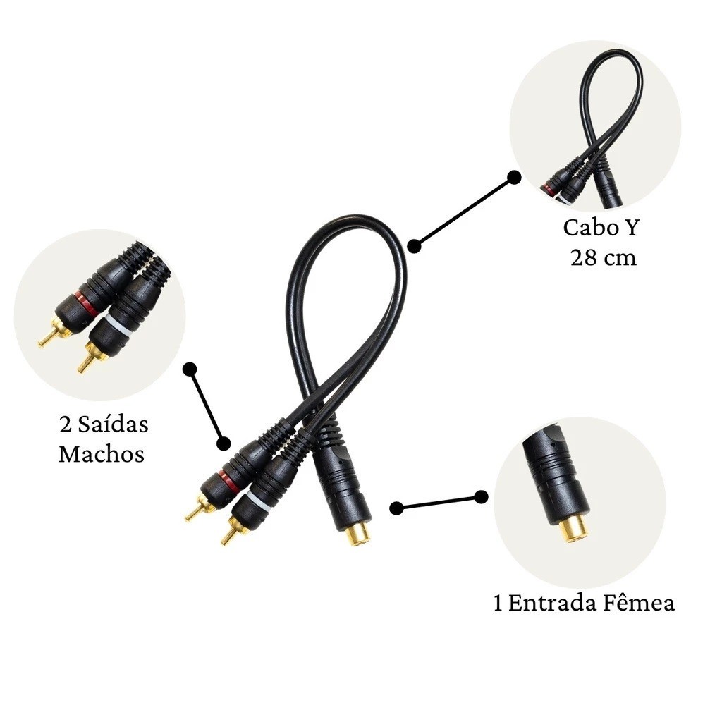 Kit 2 Cabo RCA Y 2M1F 2 Machos e 1 Fêmea Para Som emborrachado