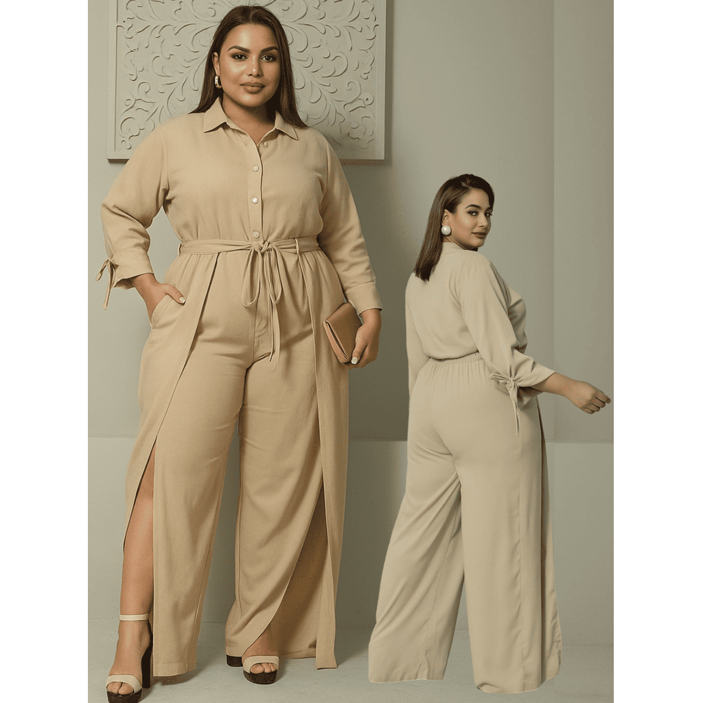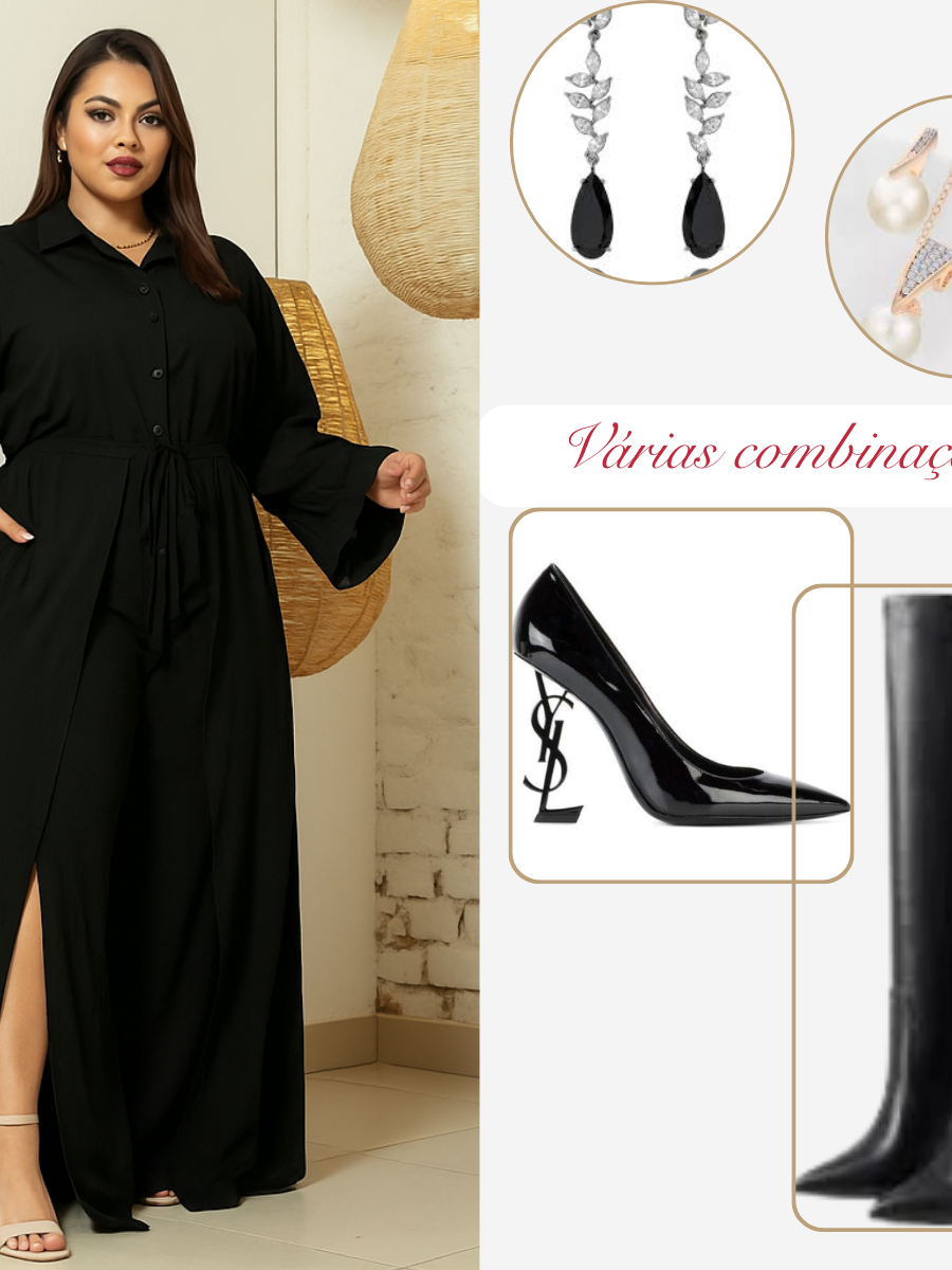 Conjunto Feminino moda Plus Size Camisa Manga Longa calça Social Festa Casual G1 G2 G3 marrom vinho bege preto