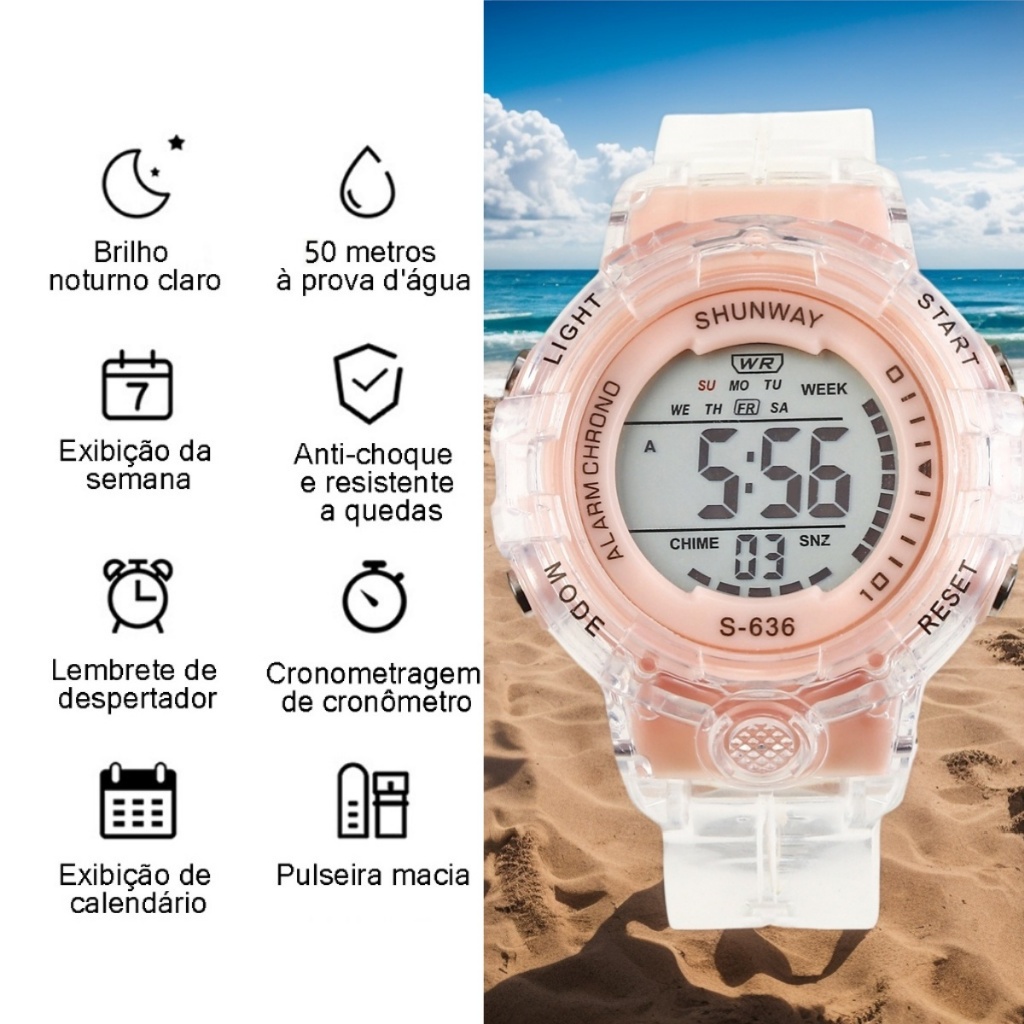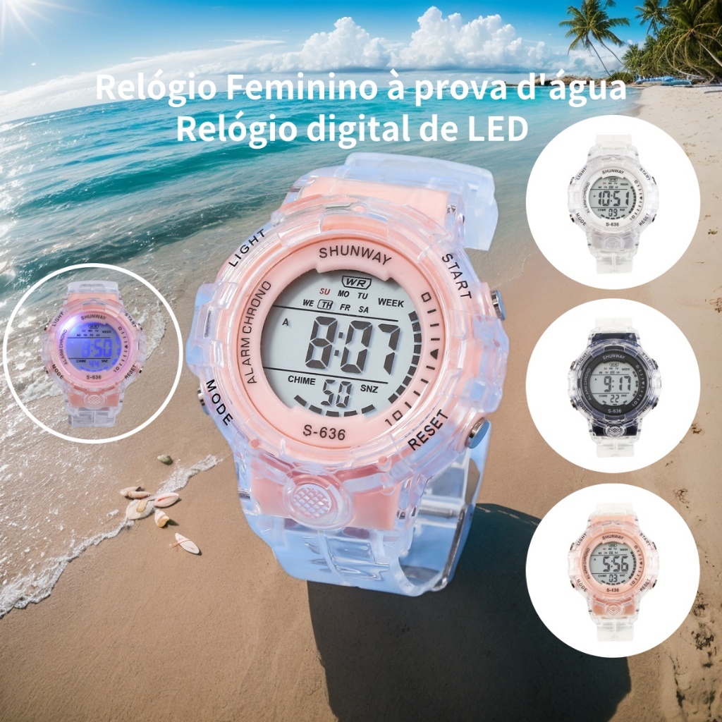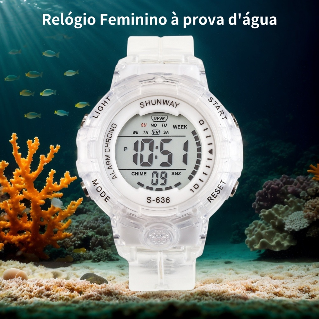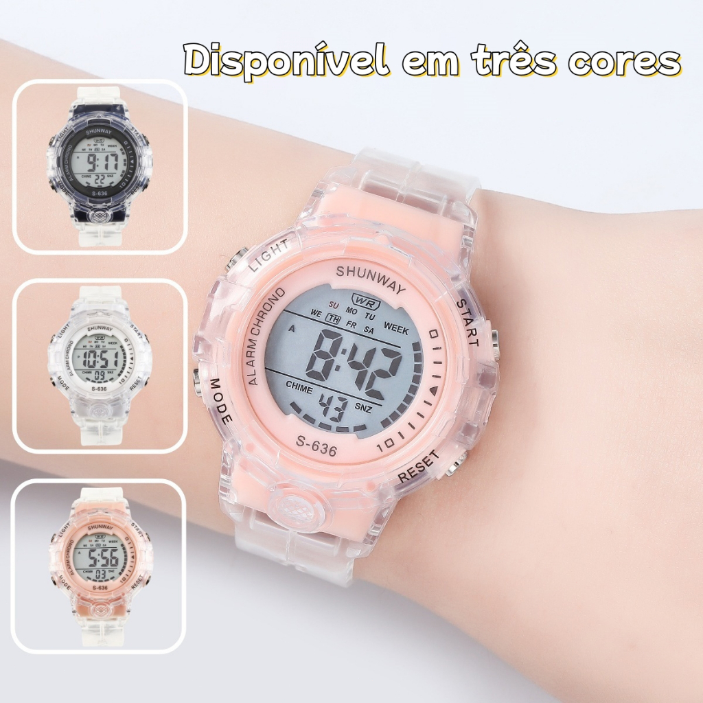 Relógio De Pulso Feminino Digital Original À Prova D'água Luminoso Relógio Fashion Transparente
