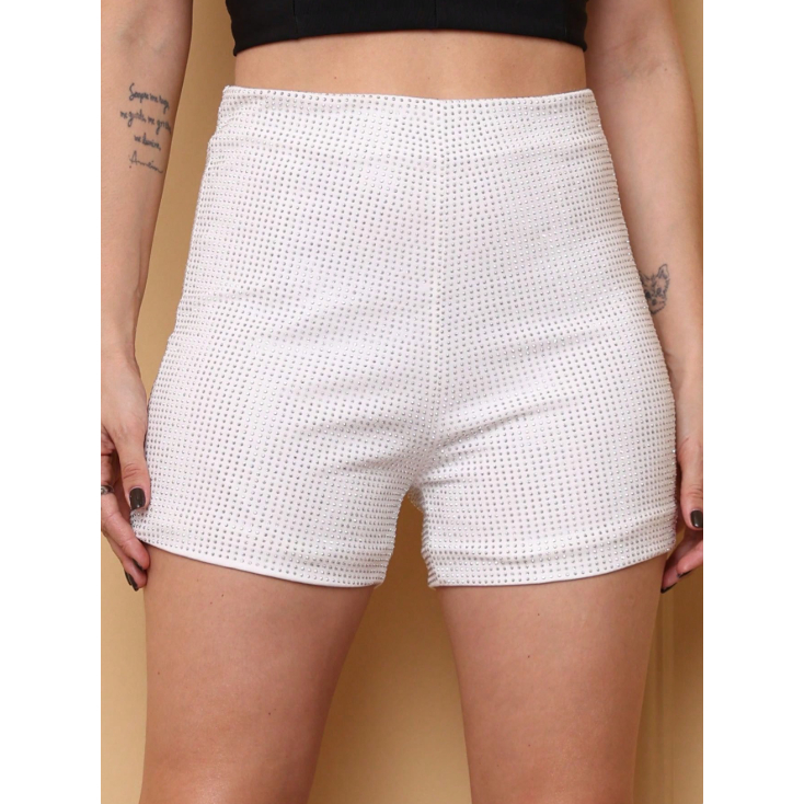 Short feminino justo com strass elegante, cintura alta, moda festa e balada