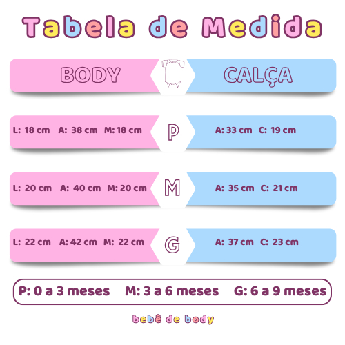 Kit 6 Peças Roupa de Bebê Pagão Conjunto 3 Bodys e 3 Calças 100% Algodão
