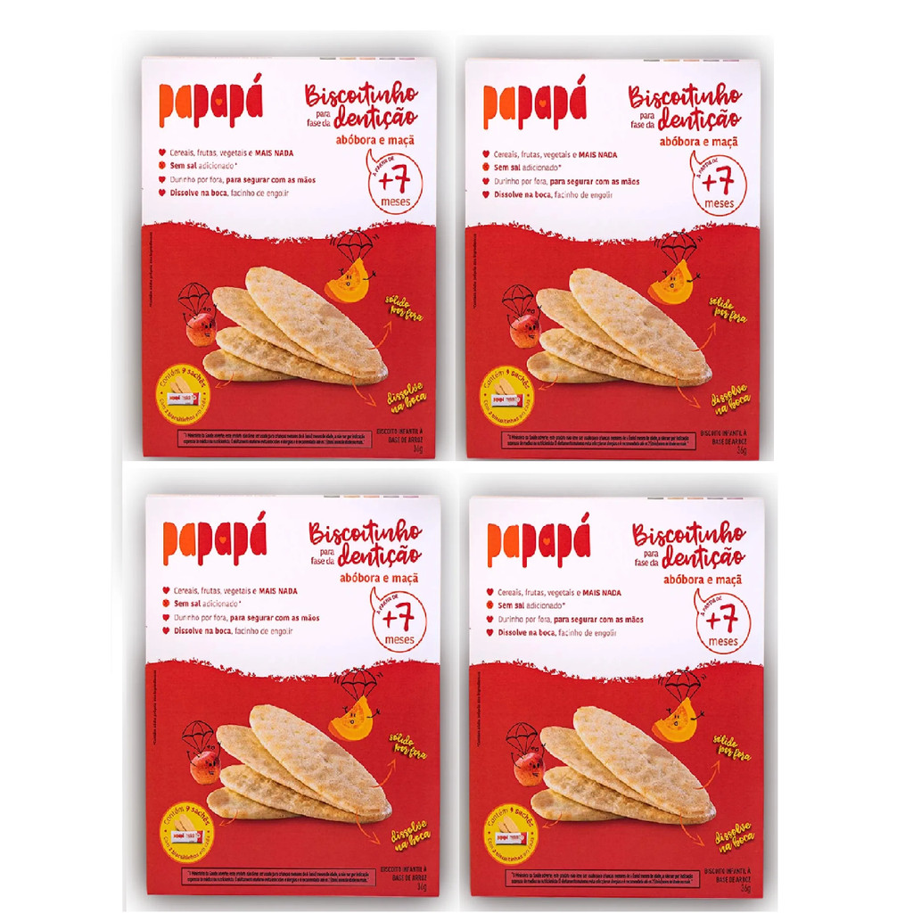 Kit 4x Biscoitinhos Para Dentição Orgânico Maçã Abóbora 36g