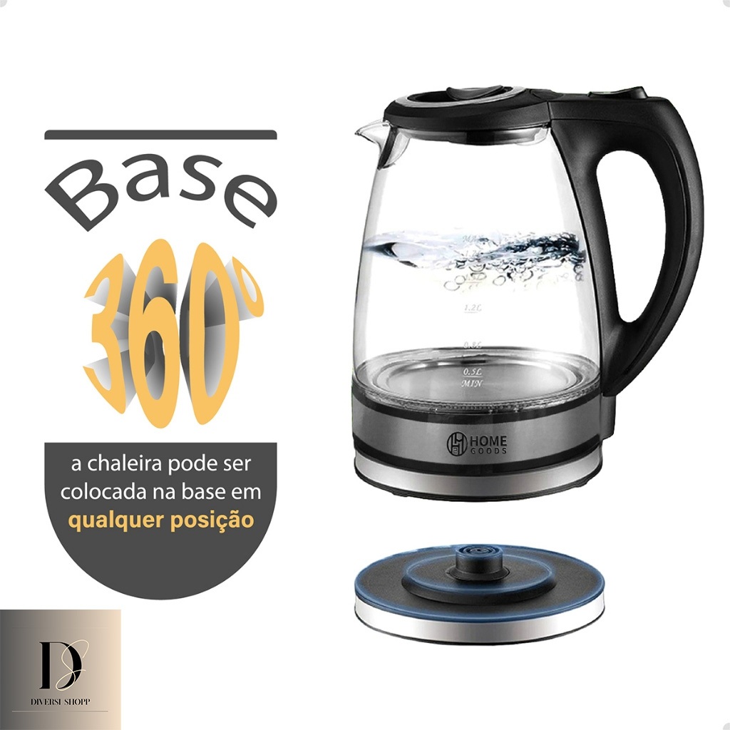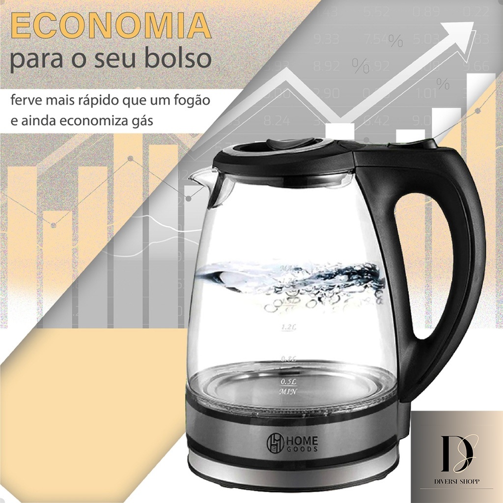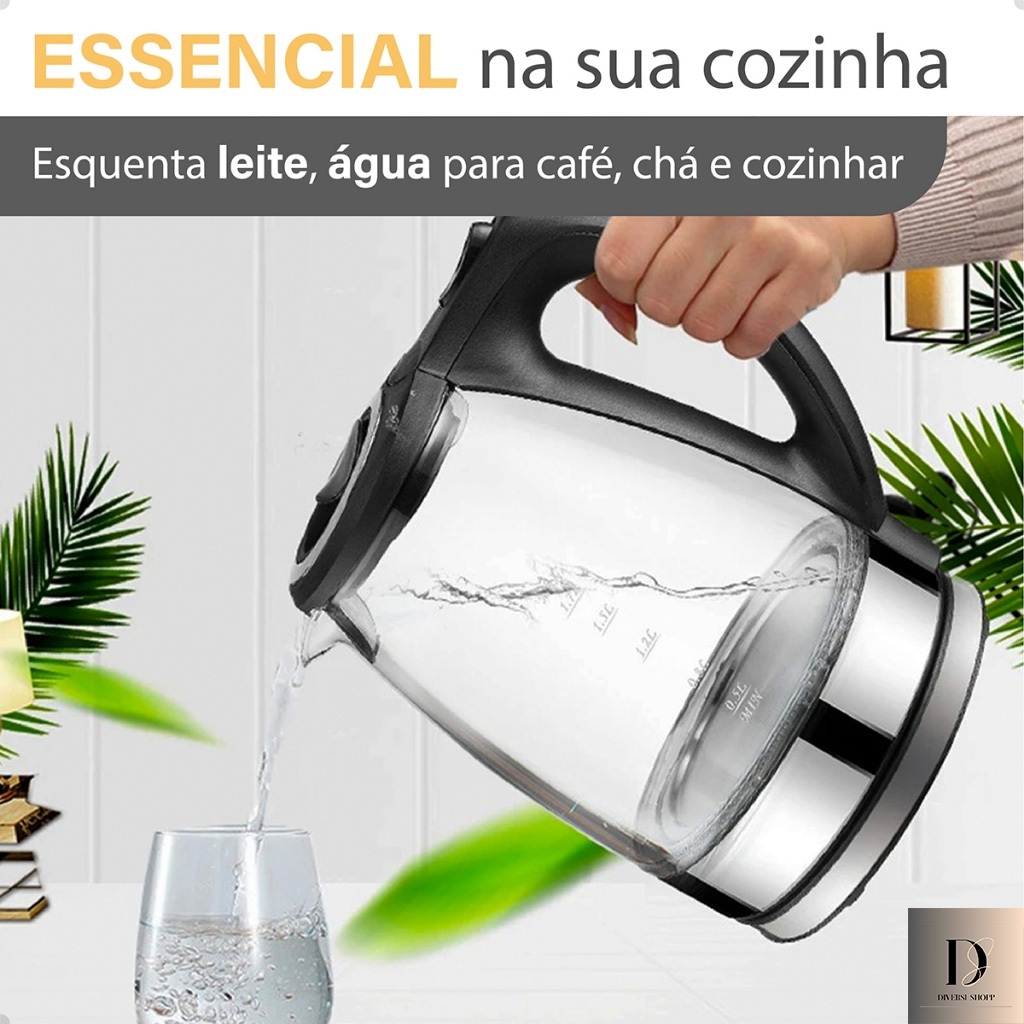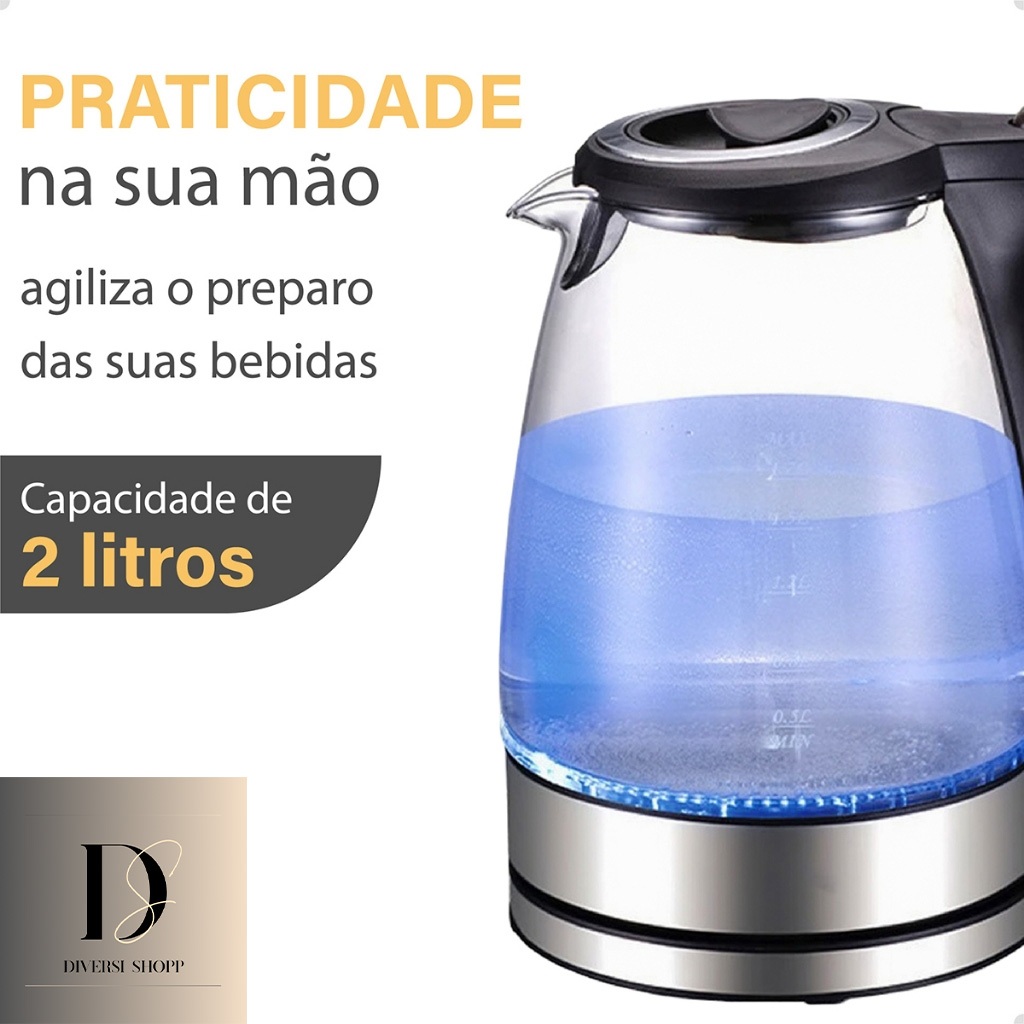 Chaleira Elétrica Auto Desligamento De Vidro ou Inox 2 Litros 110V Ou 220V Linha Premium Top