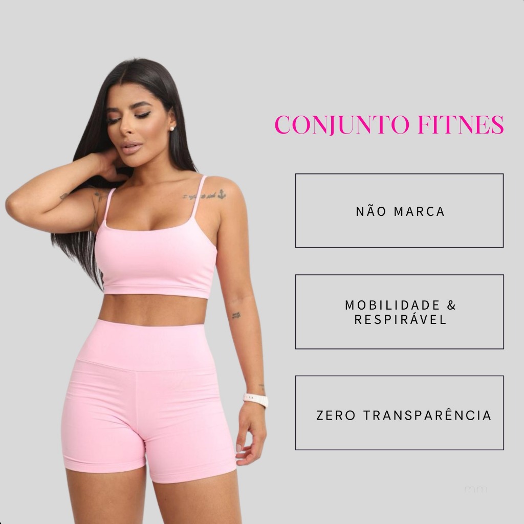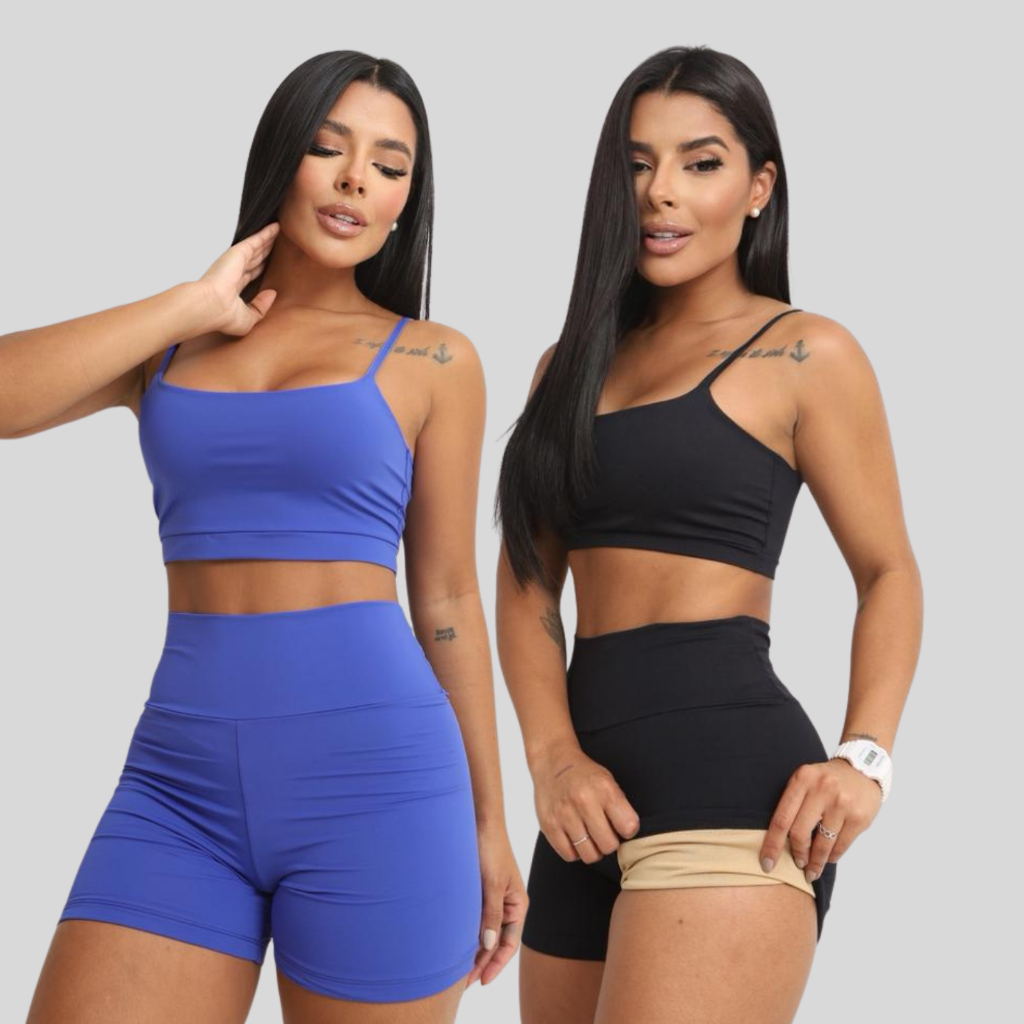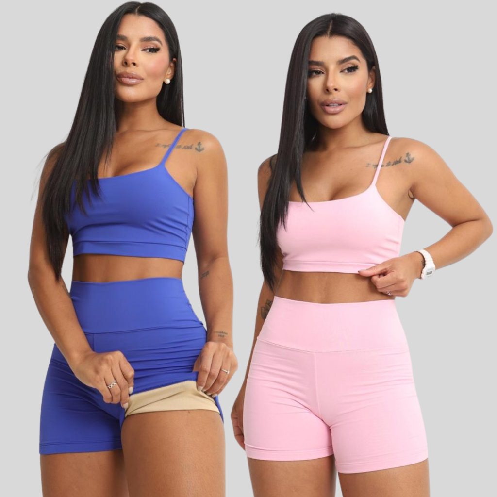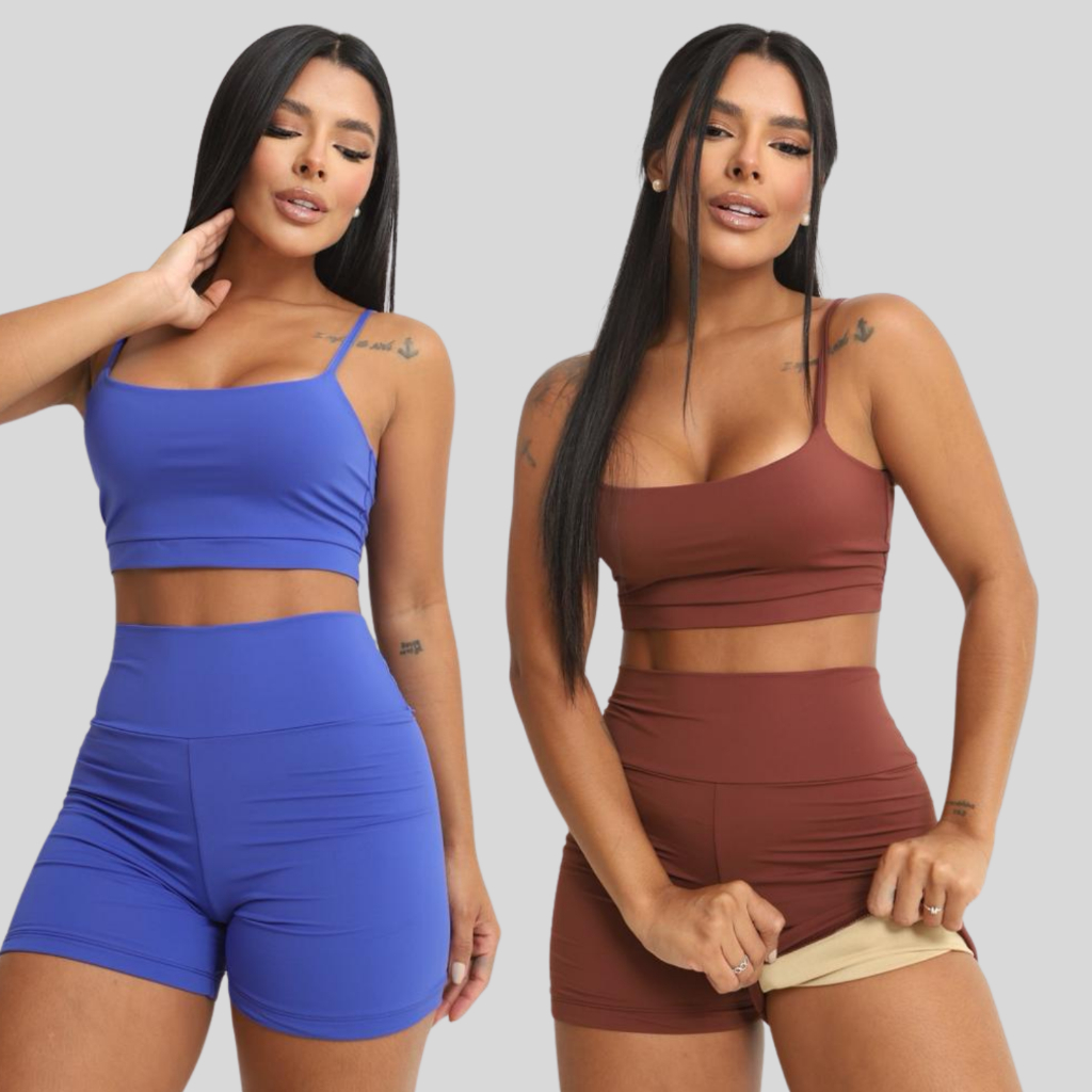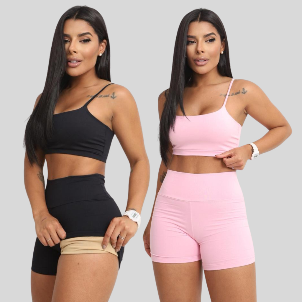 Conjunto Academia Short e Top Duplo Poliamida Corrida Roupa de Treino Feminina Zero Transparência