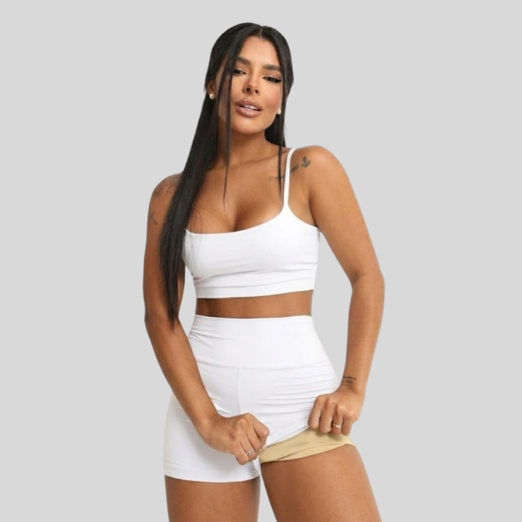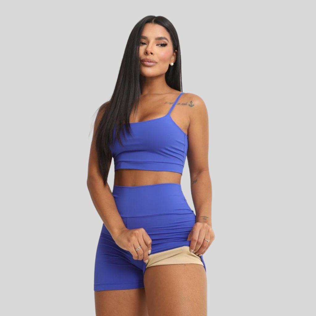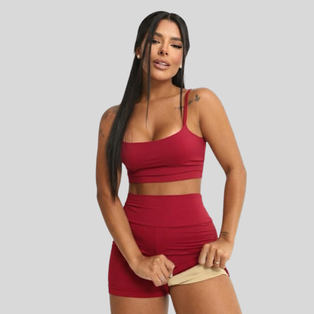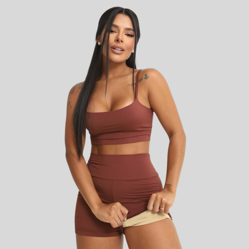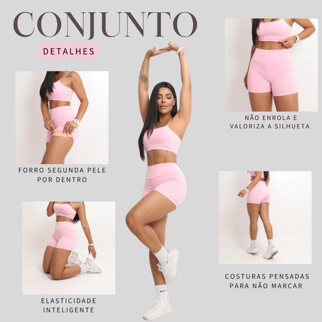 Conjunto Academia Short e Top Duplo Poliamida Corrida Roupa de Treino Feminina Zero Transparência