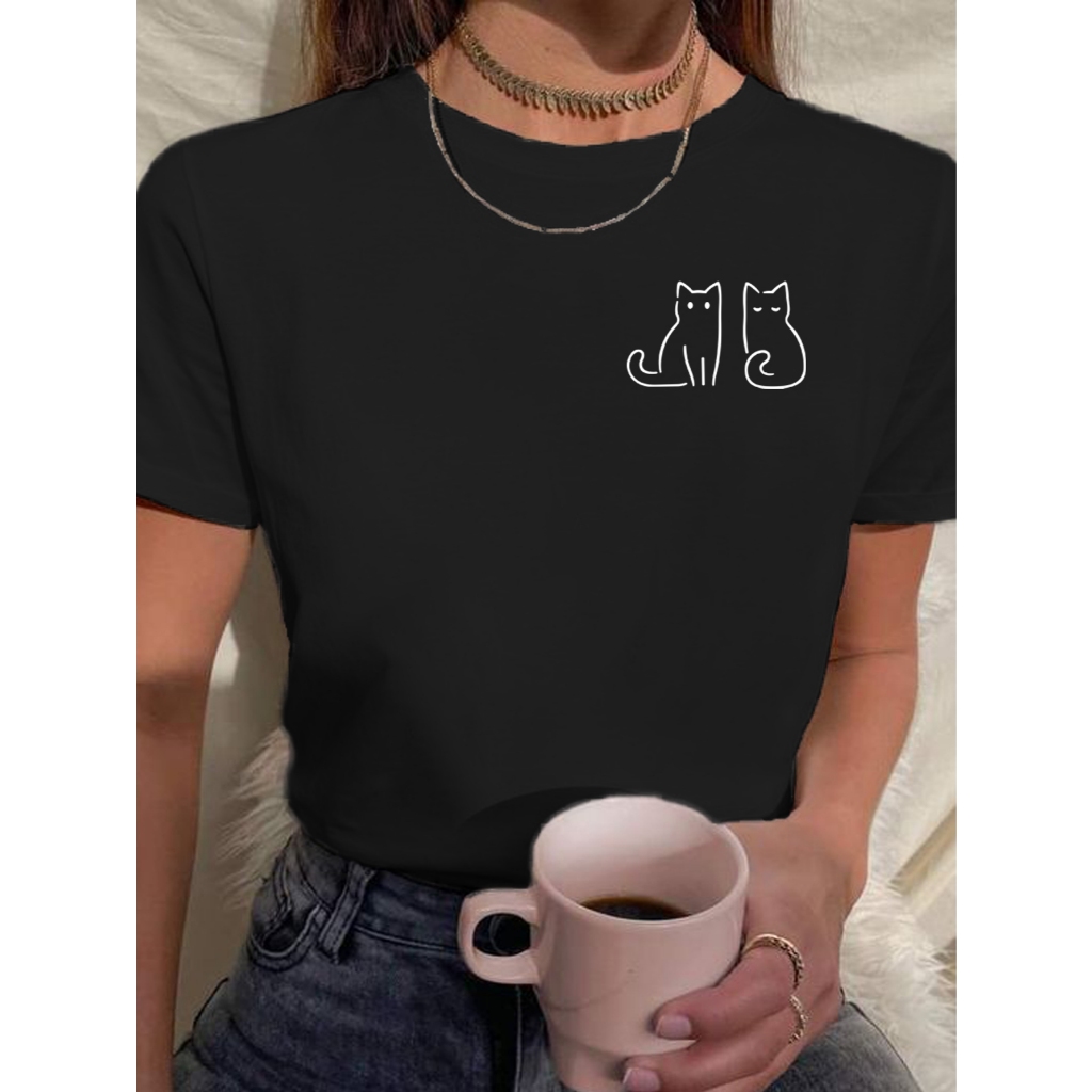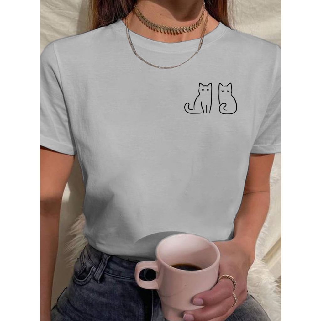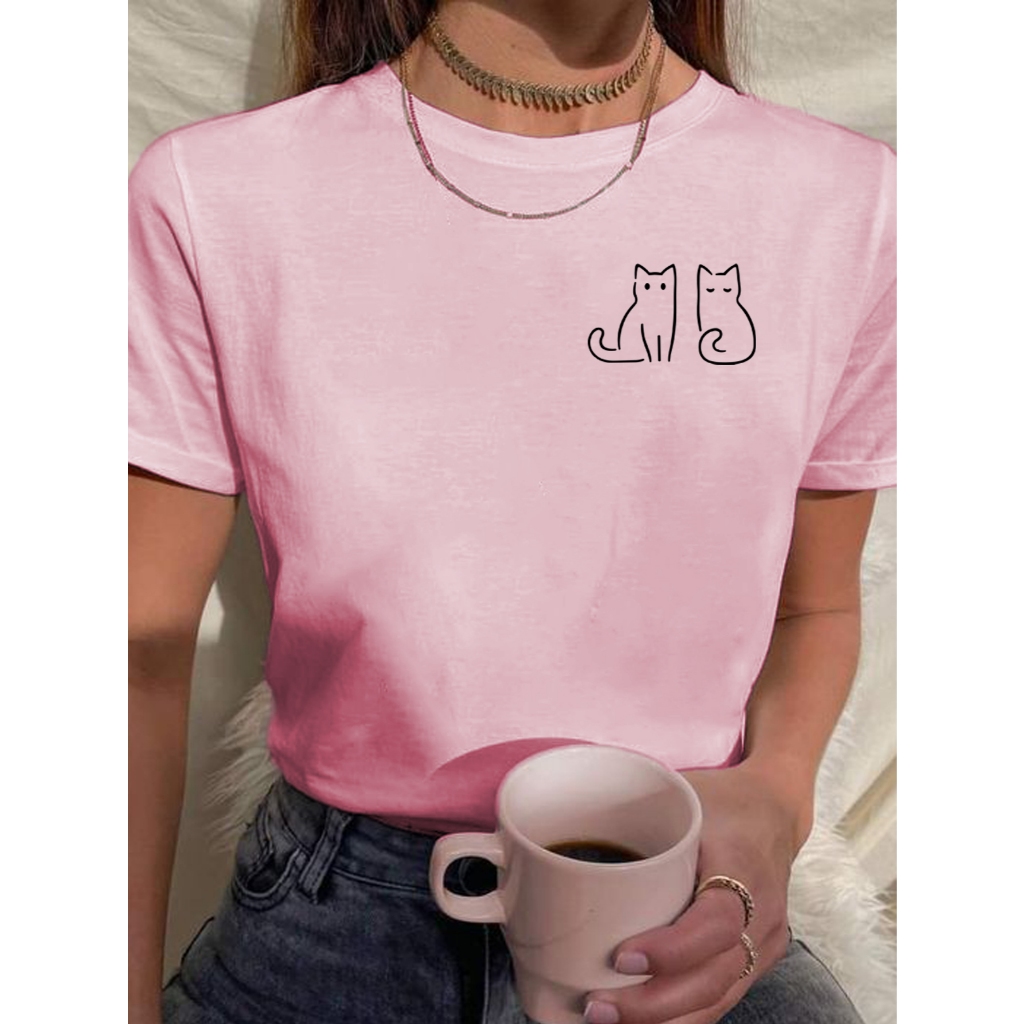 Camiseta Feminina Babylook Tshirt Dois Gatos Minimalistas Irmãos 100% Algodão