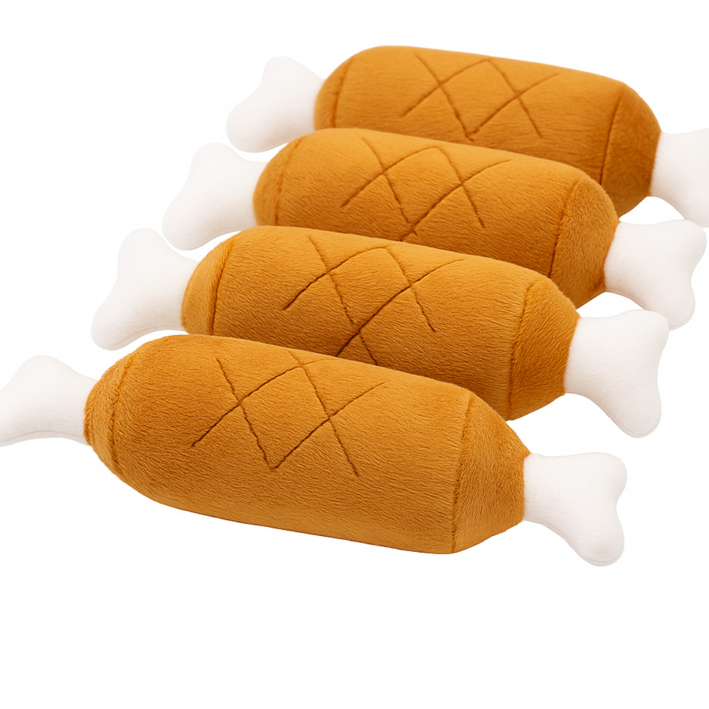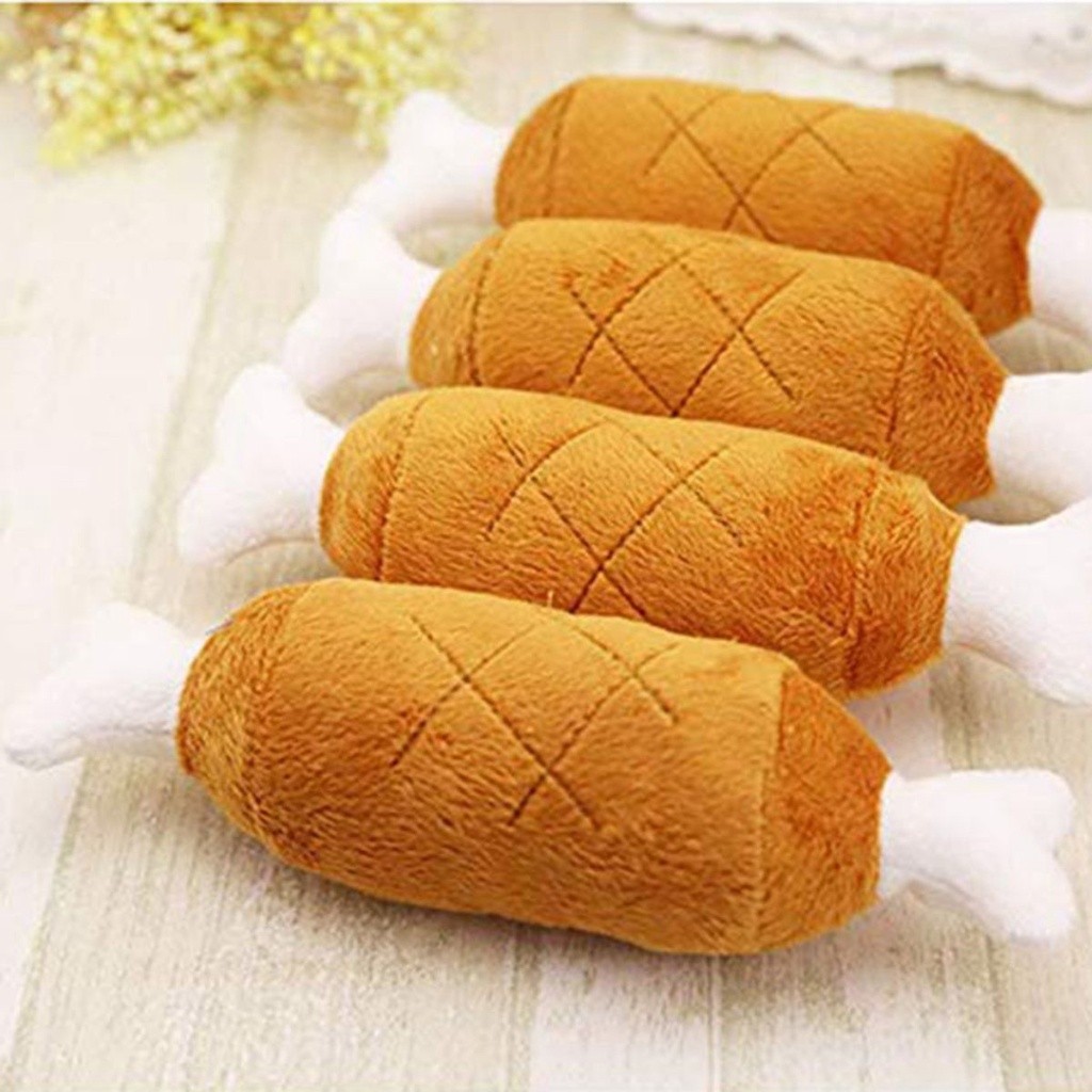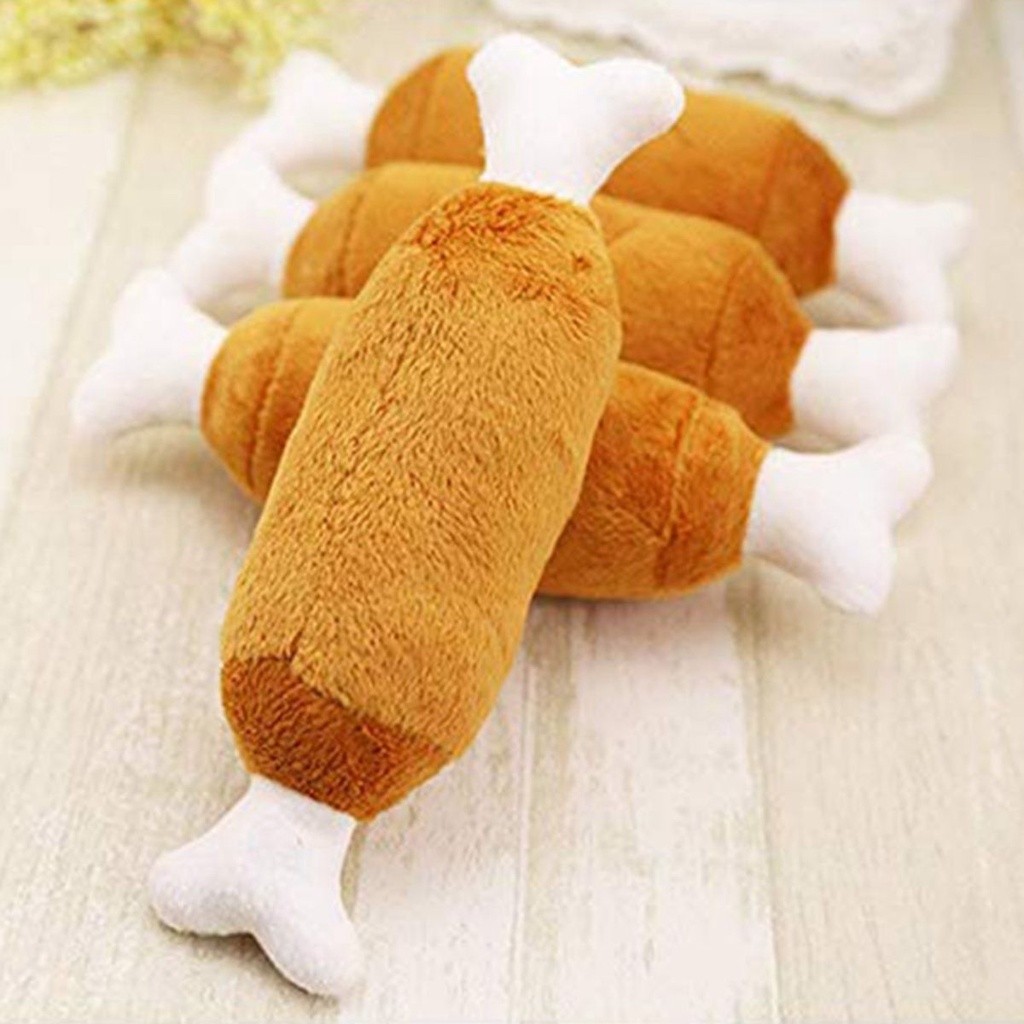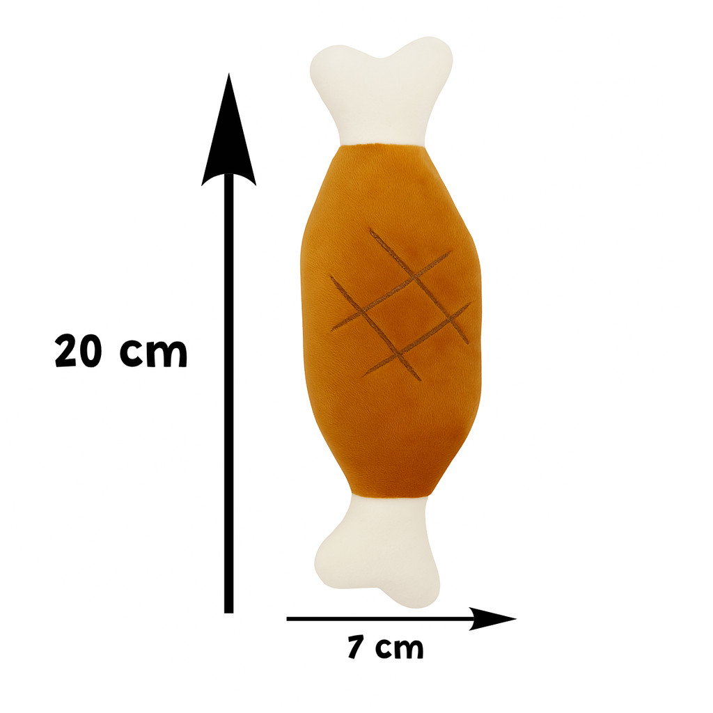 Brinquedo de Cachorro Pelúcia Carne e Osso Pet Mordedor com Apito Som Macio Divertido Interativo