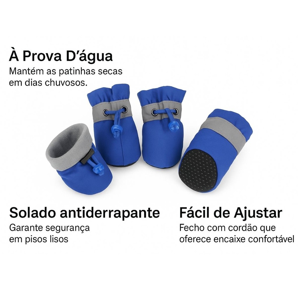 Bota de Cachorro Gato Pet Botinha Protetor de Pata Tecido Antiderrapante Ajustável Elástico