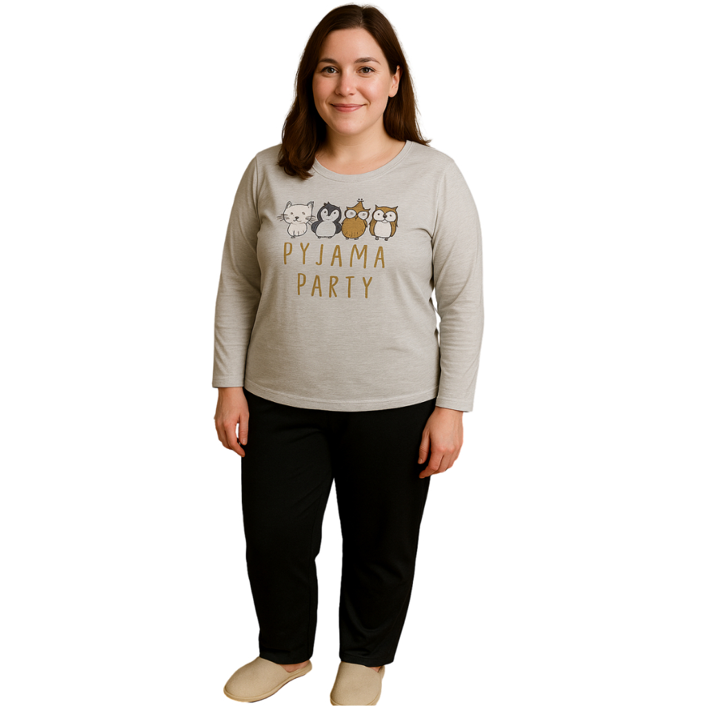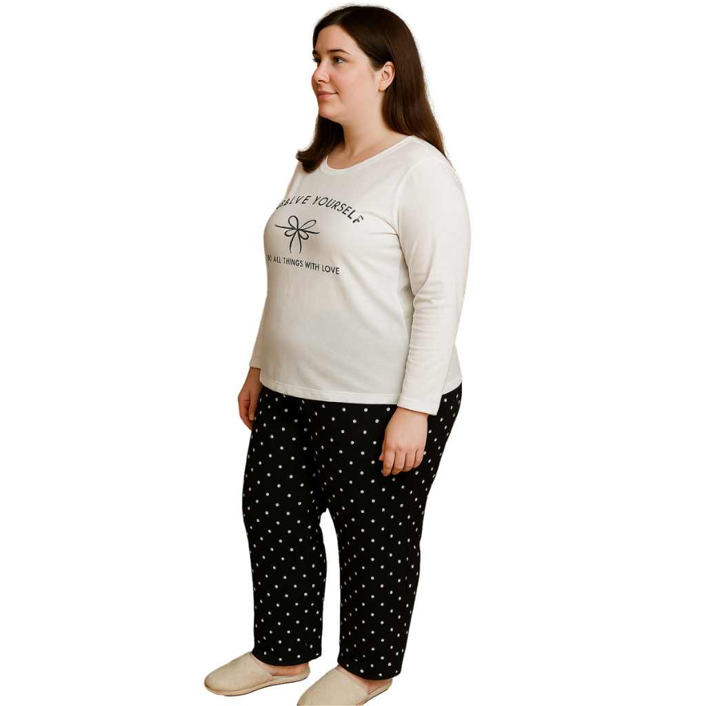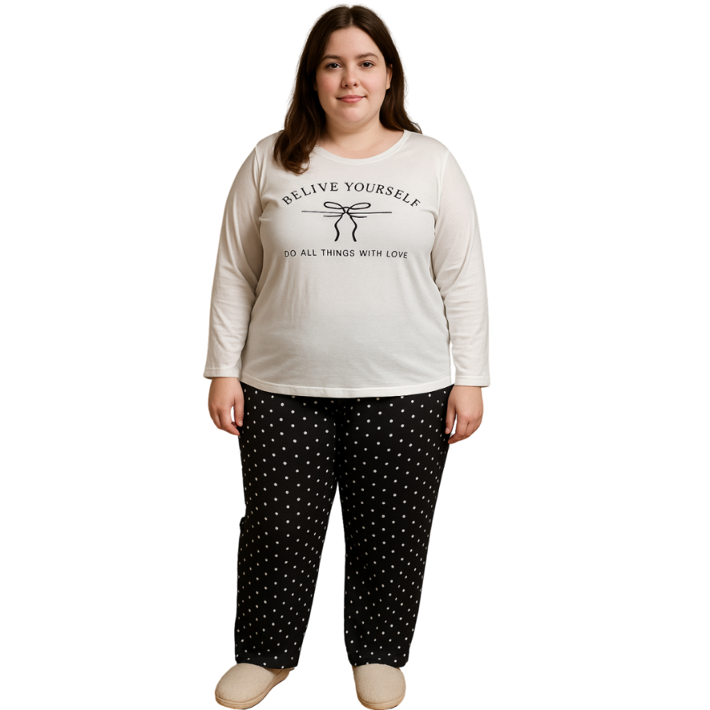 Pijama Longo Feminino Plus Size Malha Adulto Manga Comprida Inverno