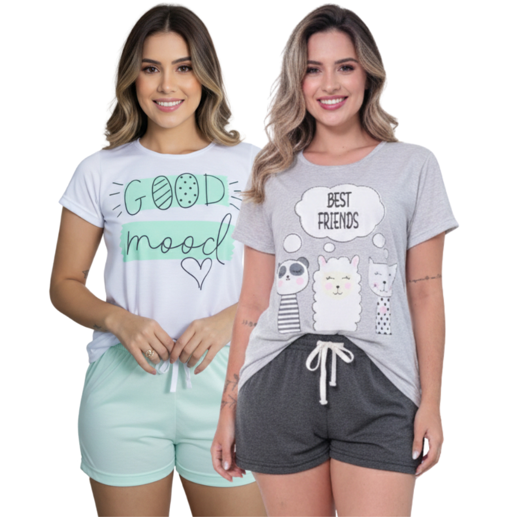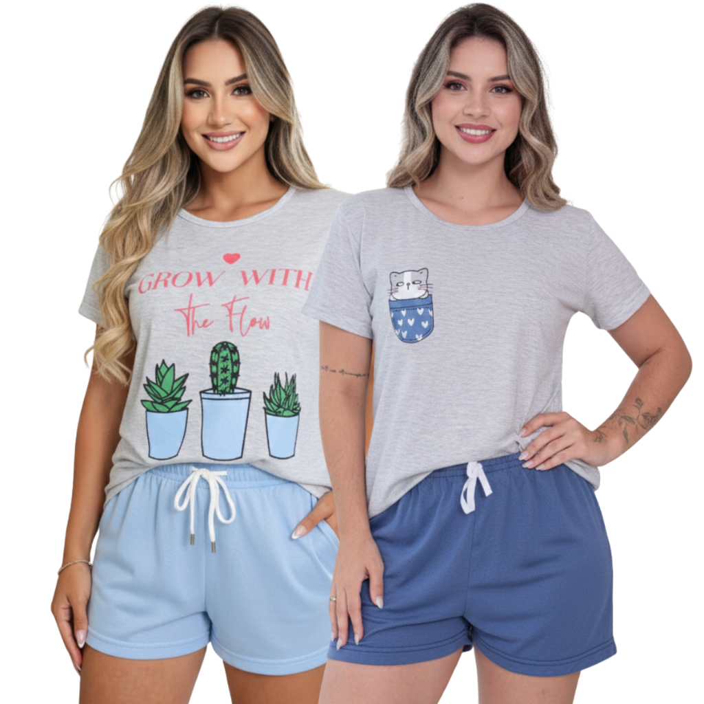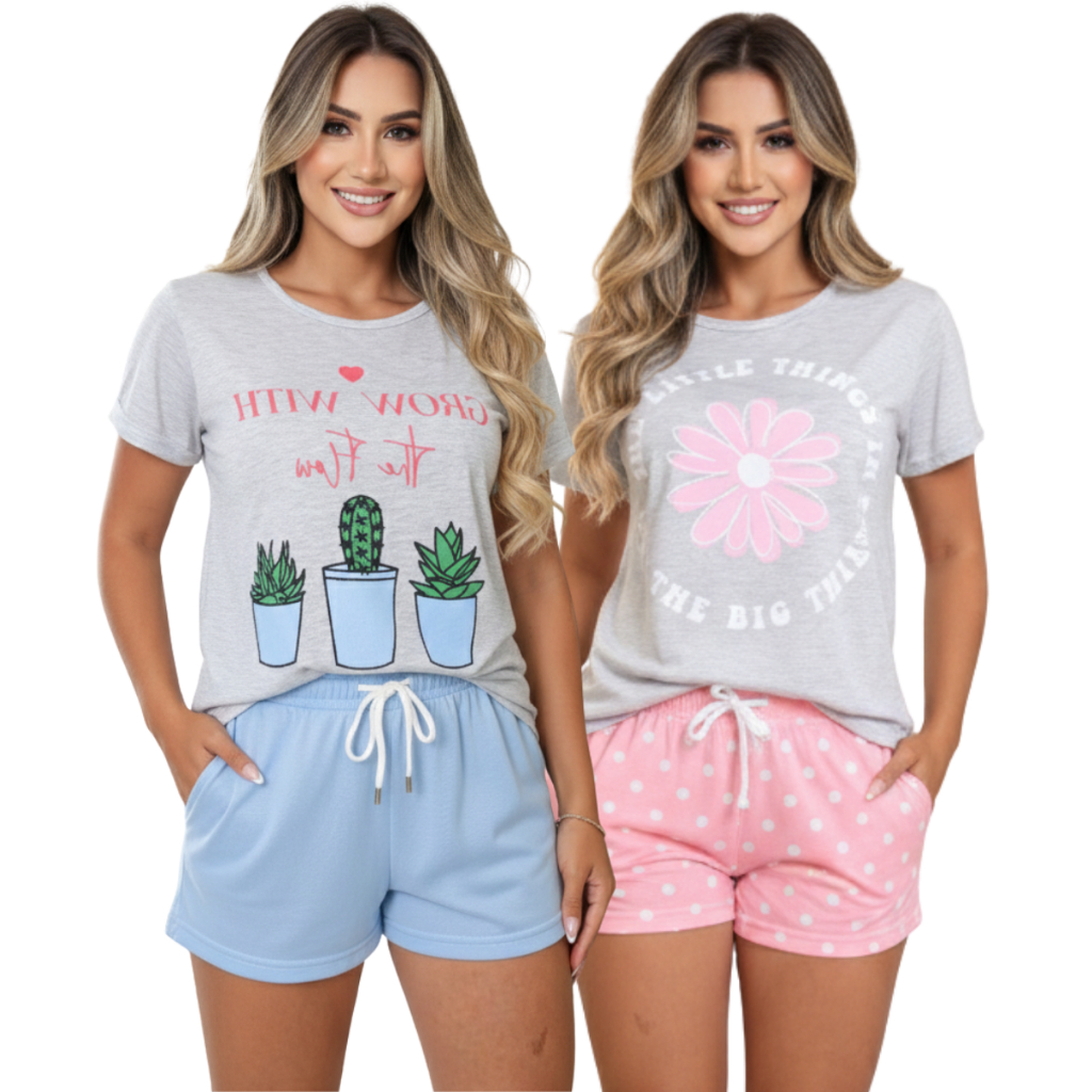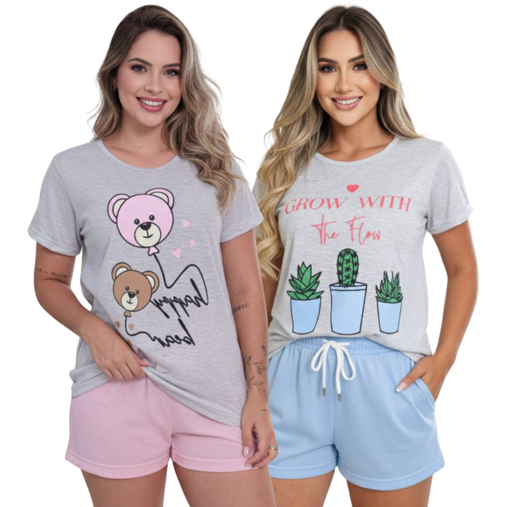 Kit 2 Pijama Feminino Aconchegante Fresquinho Verão Calor Leve Charmoso