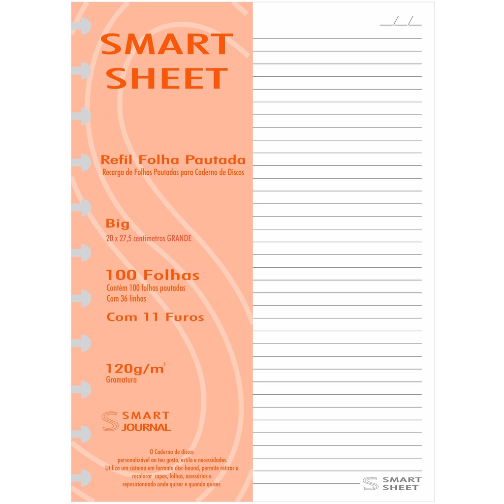 Refil Caderno Discos 120g 300 Folhas Pautado Grande 11 Furos