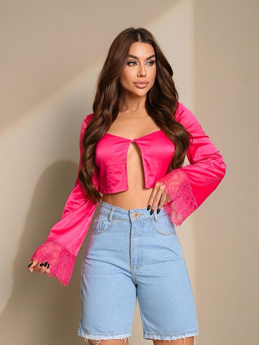 Bermuda Jorts Feminina Jeans Marmorizada Cintura Alta Sem lycra
