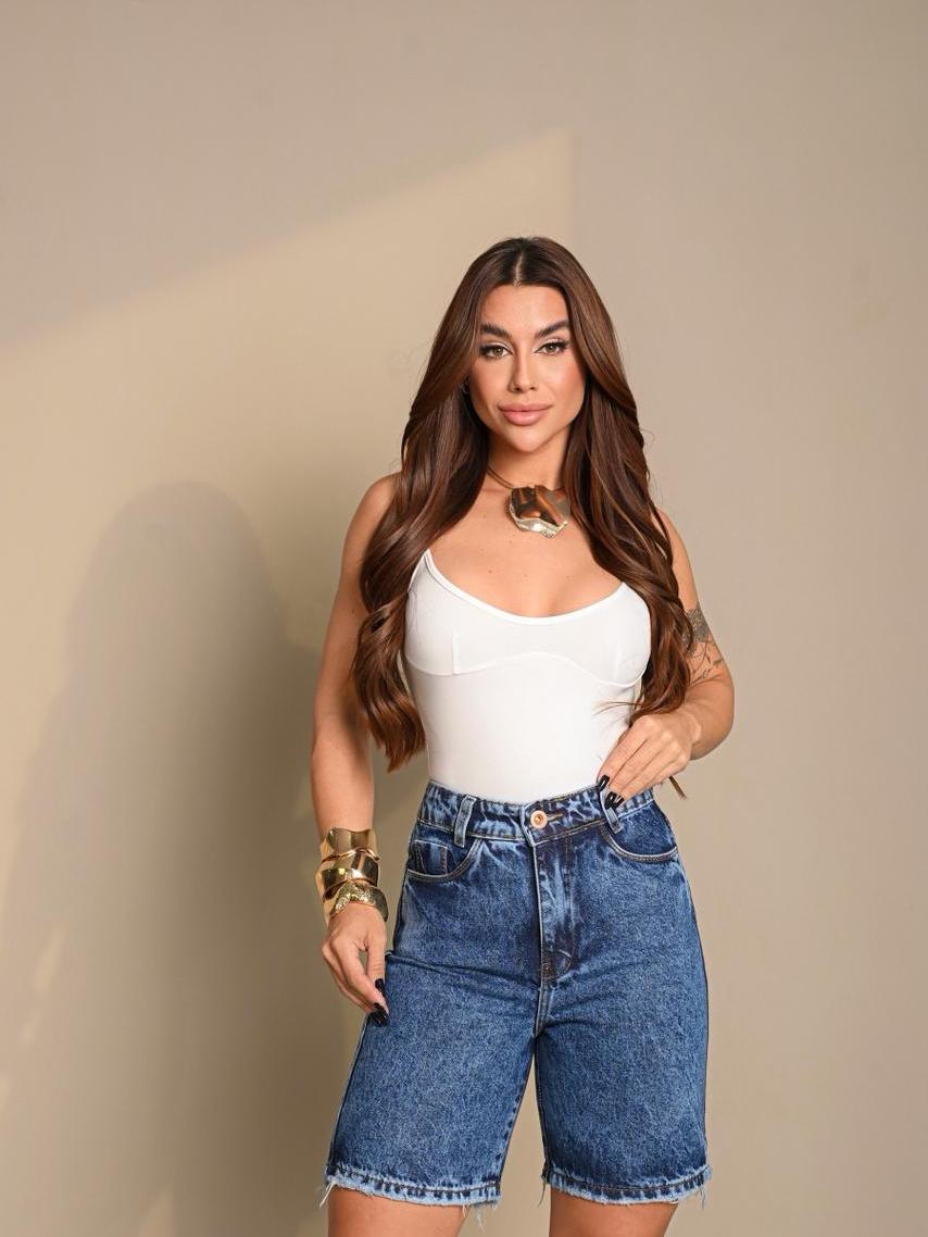 Bermuda Jorts Feminina Jeans CLARO DELAVÊ Cintura Alta Sem lycra