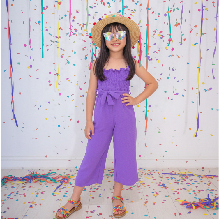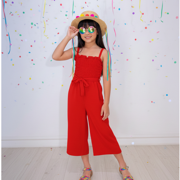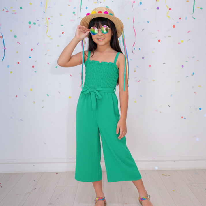 Macaquinho Verão Soltinho Infantil Menina de 4 a 10 anos Liso em Crepe Duna