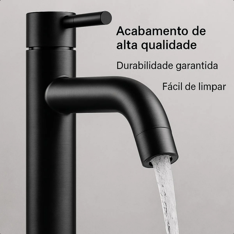 Torneiras Banheiro Preto Lavatório Bica Alta Alavanca Moderna Aço Inox 304 Luxo
