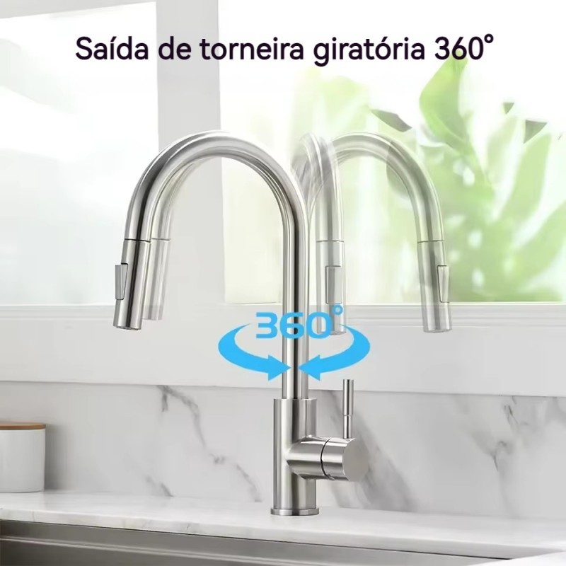 Torneira Gourmet de Cozinha Misturador Monocomando Com Spray Extensor, 2-funções