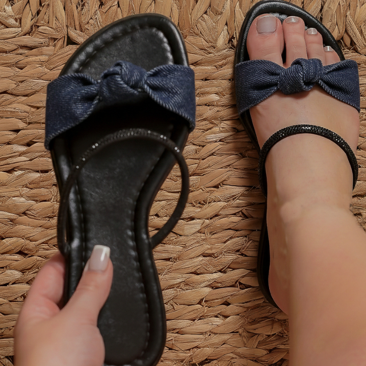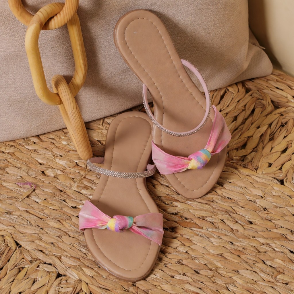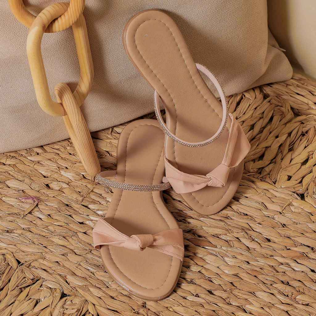 Sandália Feminina Rasteirinha Brilhosa Brilho Strass Lacinho