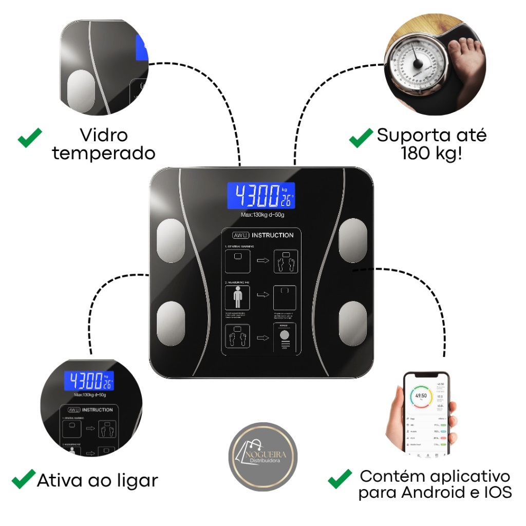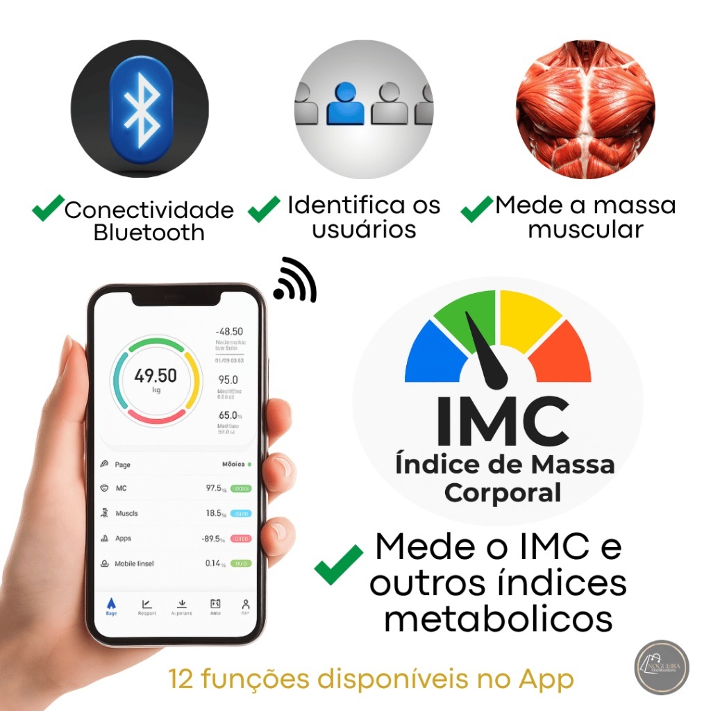 Balança Bioimpedância Medidora Corporal Bluetooth Digital Até 180 Kg
