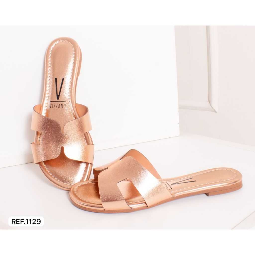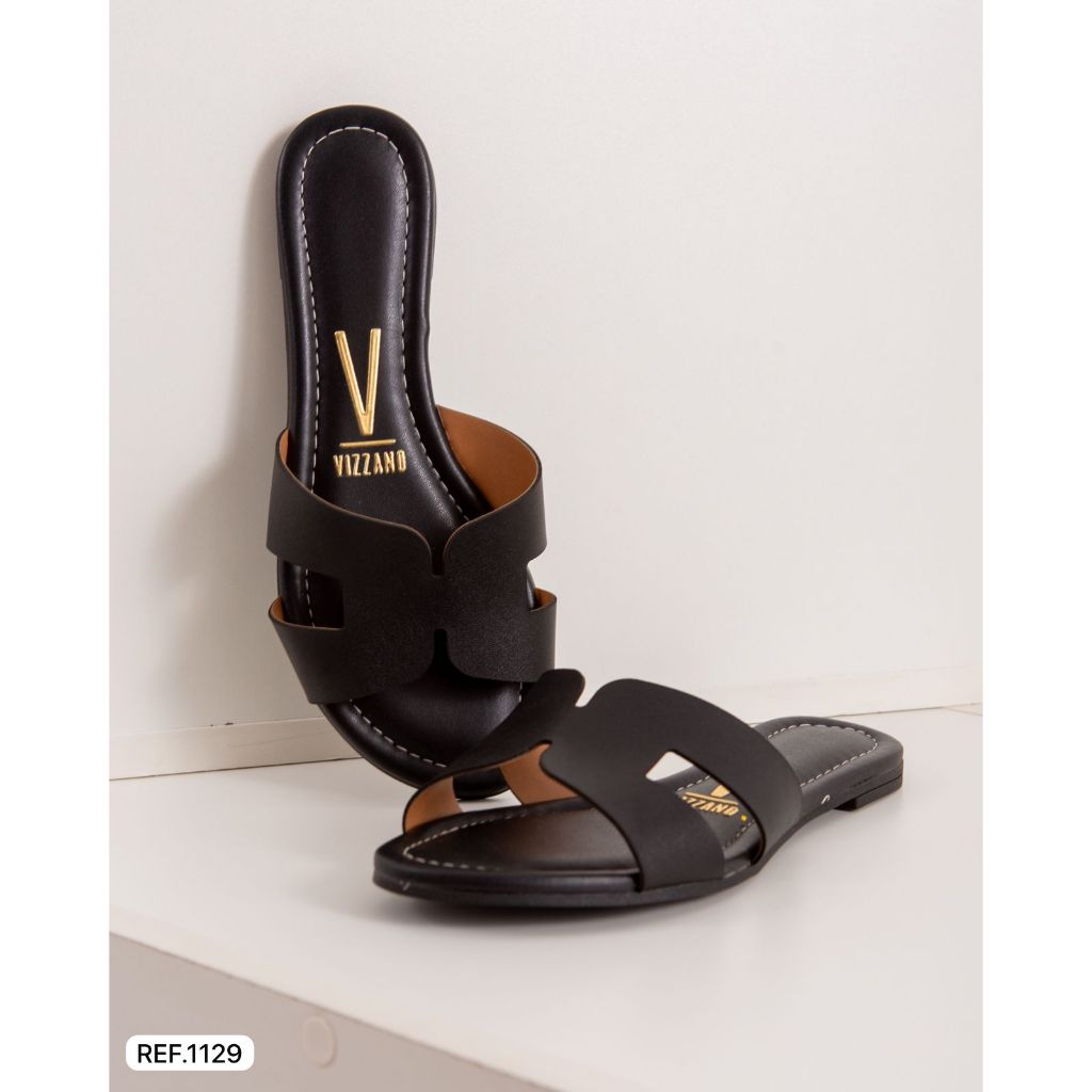 Sandalia Rasteira Feminina Vizzano 1129 Cabedal Em H Super Tendência