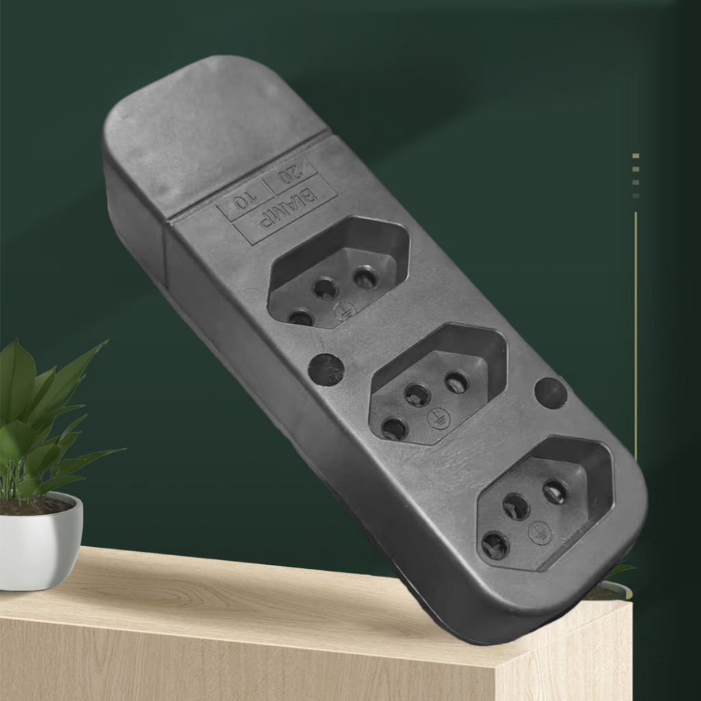 Tomada Tripla 3 Pinos 10A/20A/250V - 2200W (Padrão NBR) Benjamim 1UN 3UN 5UN Alto