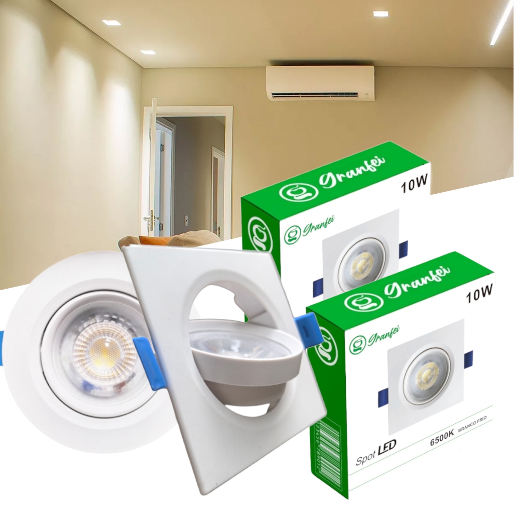 Kit 50 Luminária Led Spot 5w 7w10w Quadrado Redondo - Embutir Branco Frio/Neutro/Quente - Alto