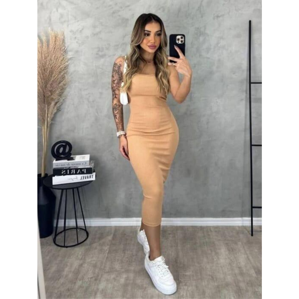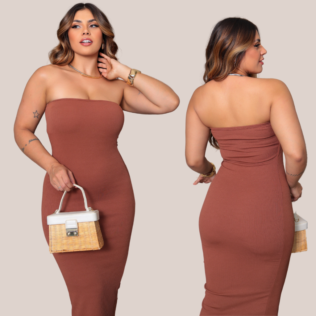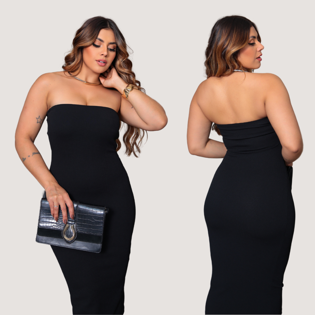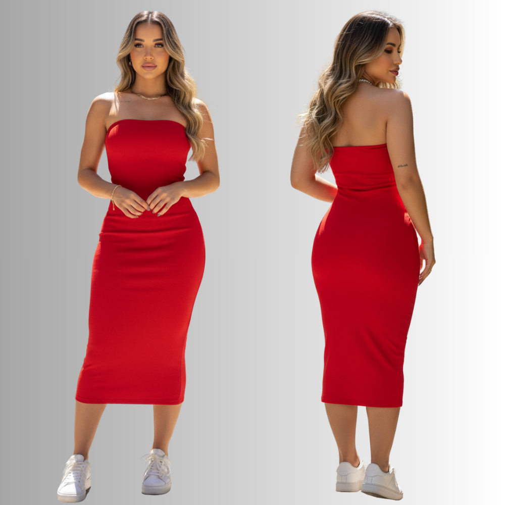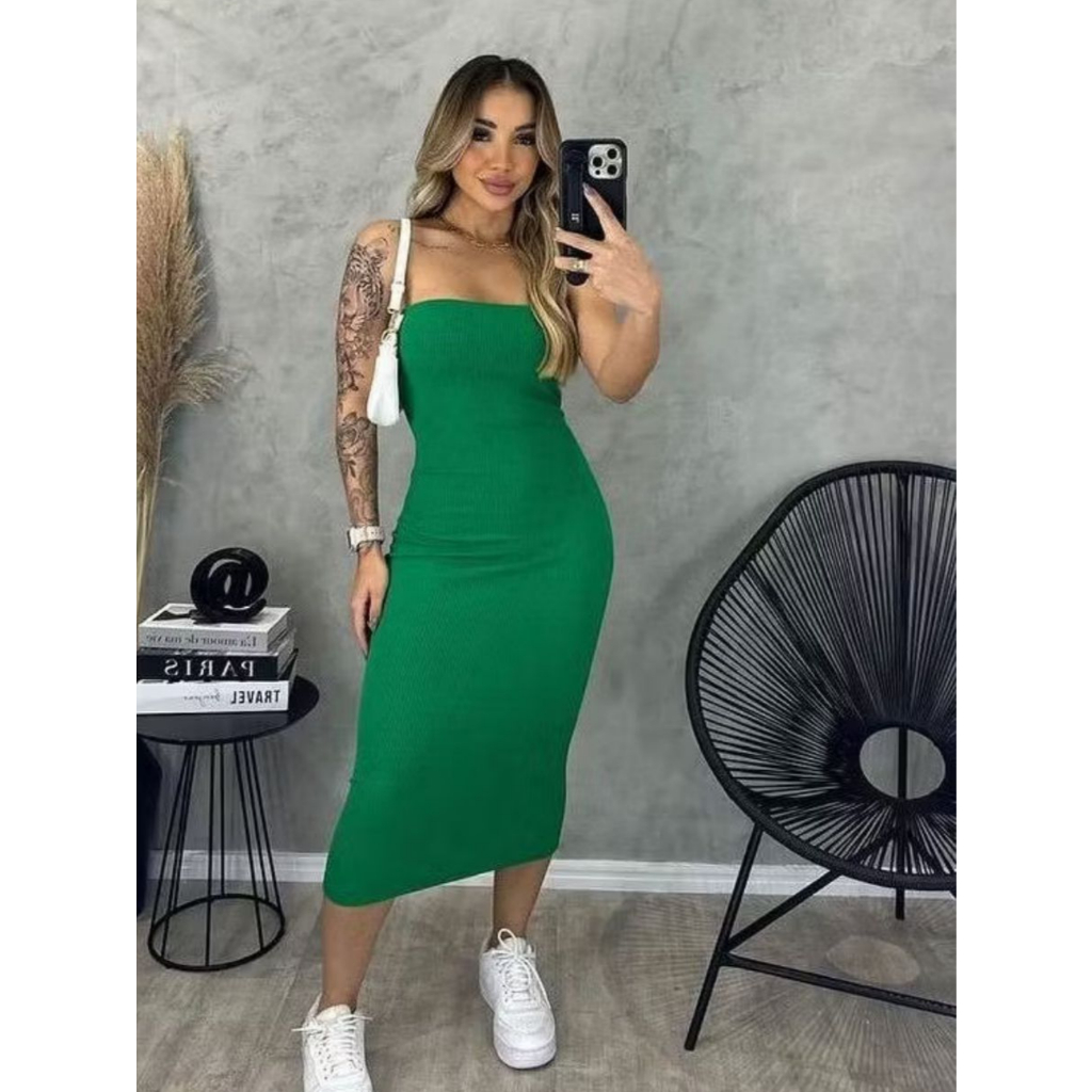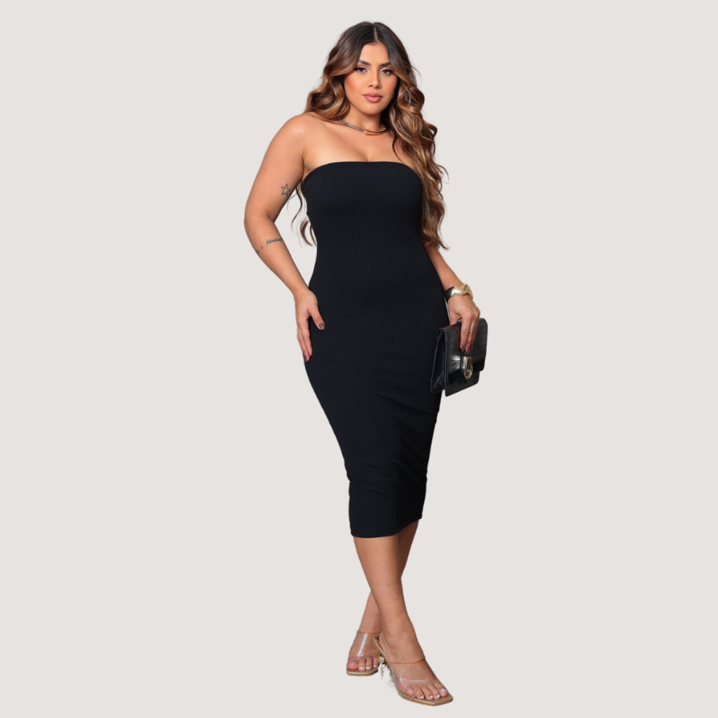 Vestido Midi Tomara que Caia Confortável Tubinho Anarruga Premium Forro Duplo Moderno