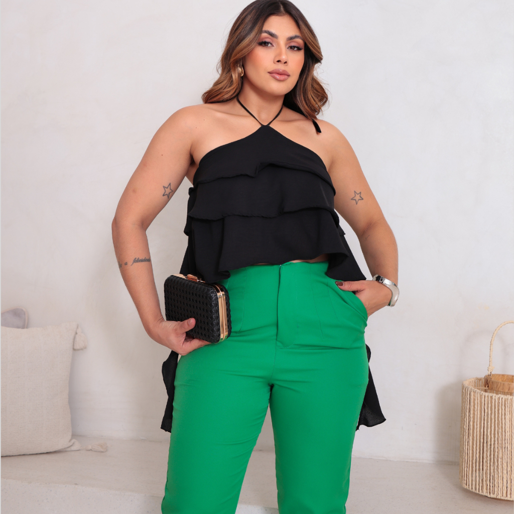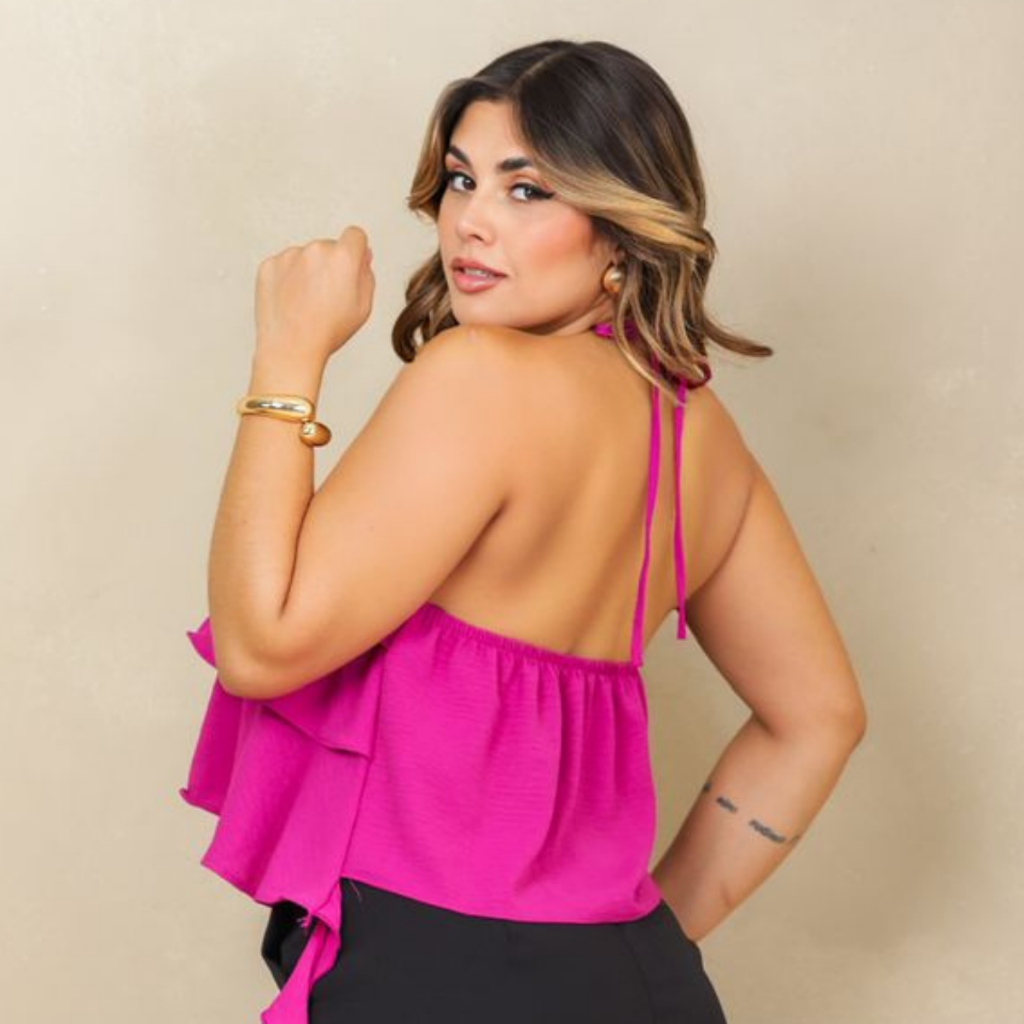 Blusa Feminina Regata Soltinha Babado Amarração Tendência Moda Verão Estilo Boho Chick