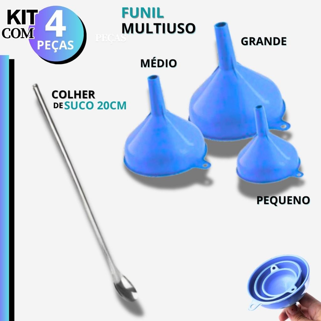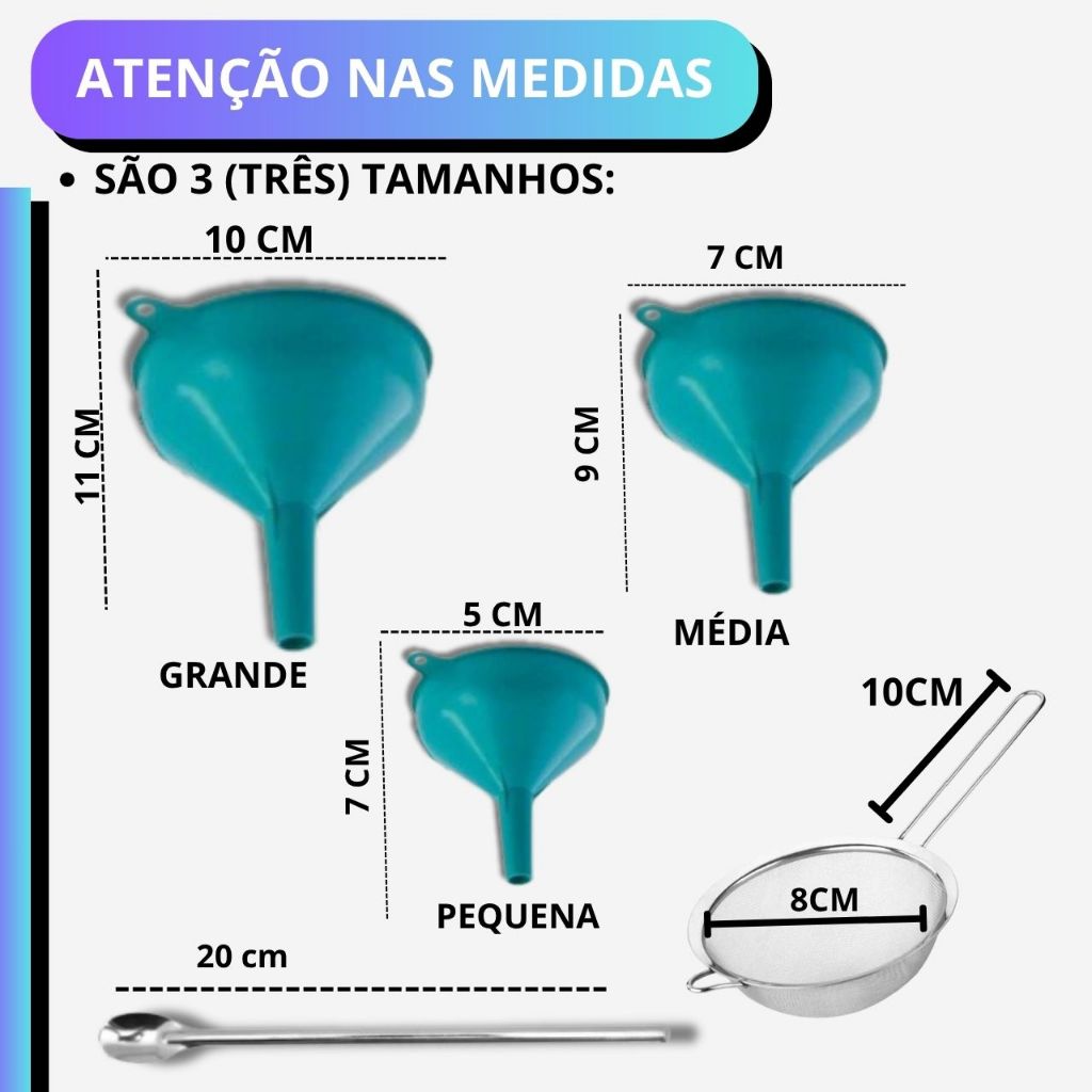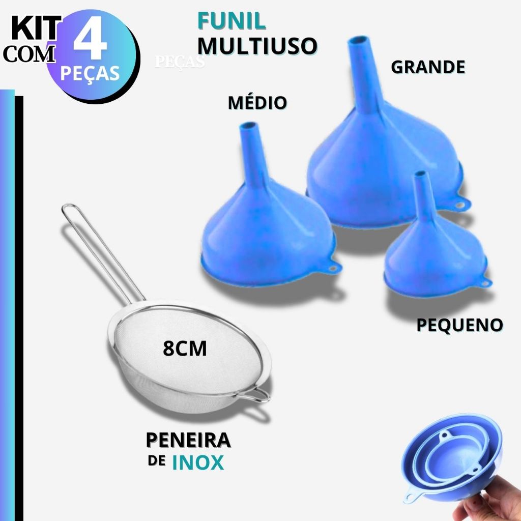 Funil Plástico Colher Suco Peneira INOX 5 Unid Oficina Artesanato Cozinha Funil Grande Médio Pequeno