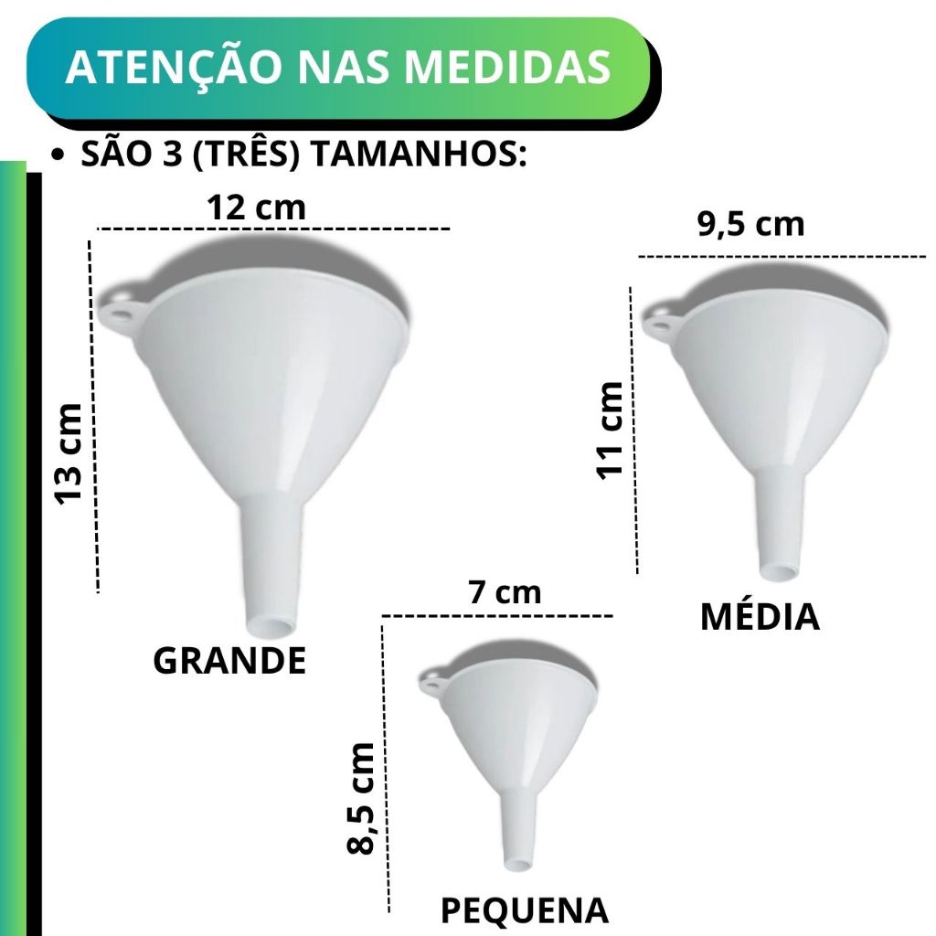 Kit Funil Plástico Cozinha 3 Und Branco Multiuso Oficina Artesanato Cozinha P M G