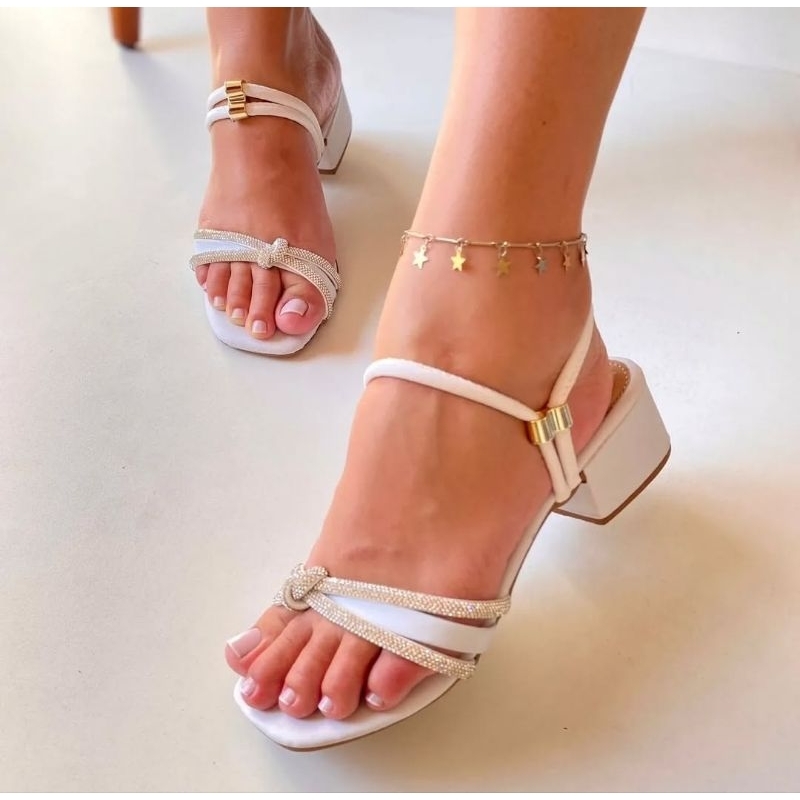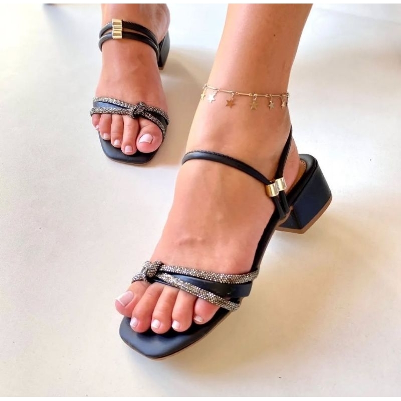 Sandalia Salto Grosso Sandalia Salto Bloco Detalhe Em Nó Promoção