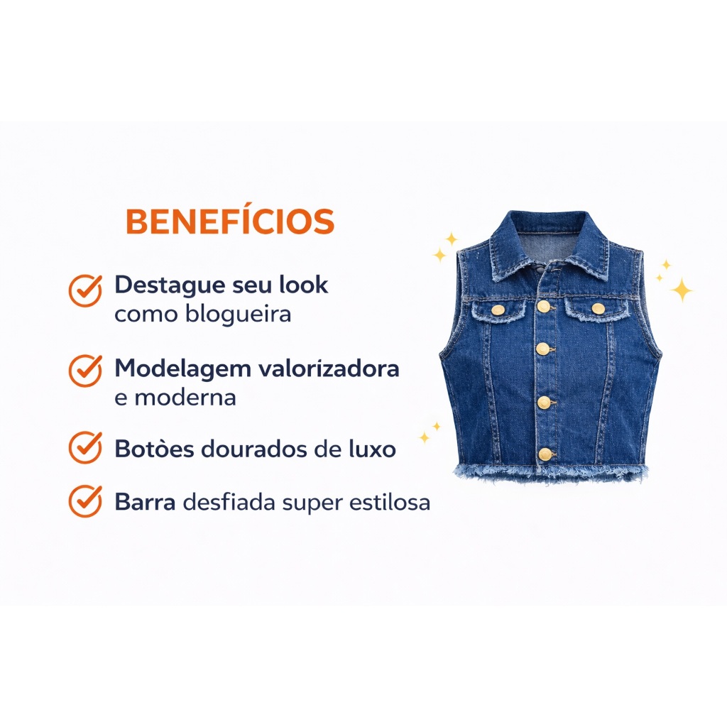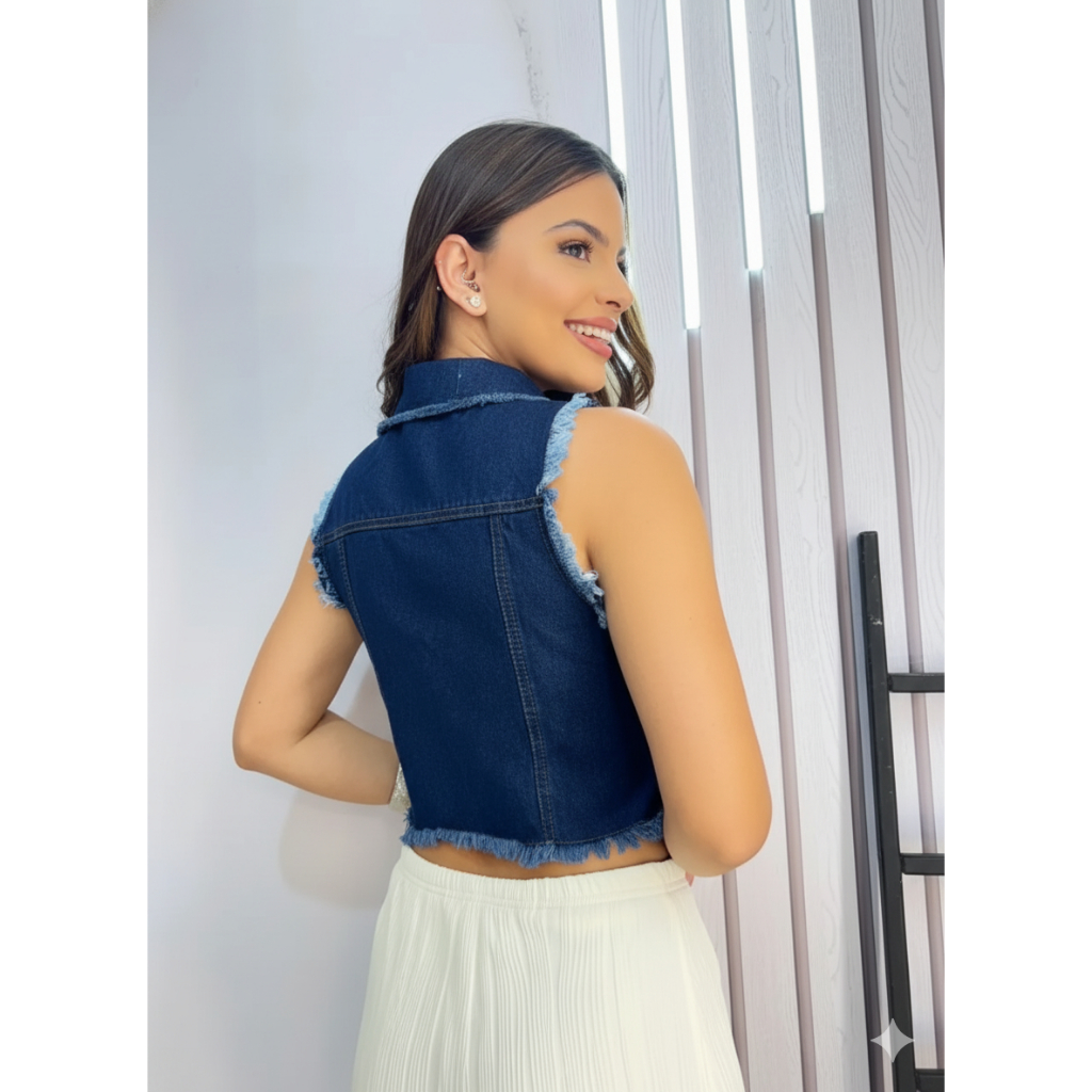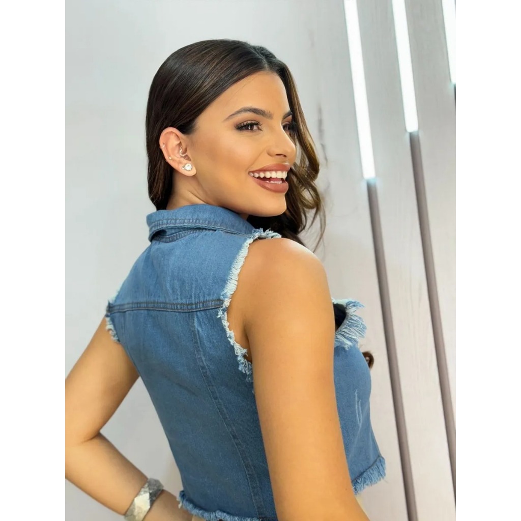 Colete Jaqueta Jeans Feminina Desfiada Diva Moda Botão