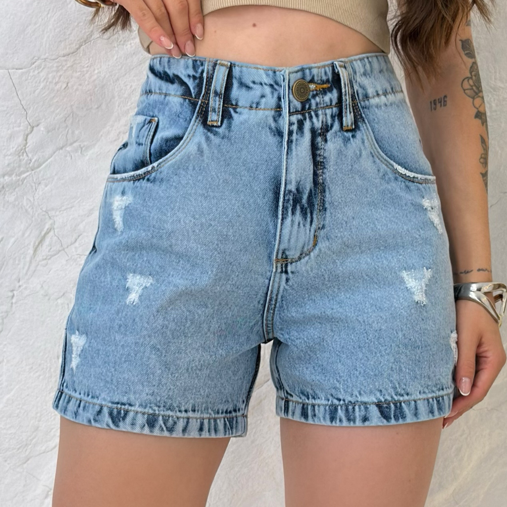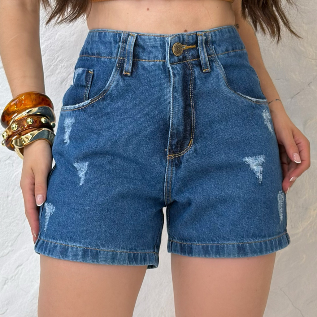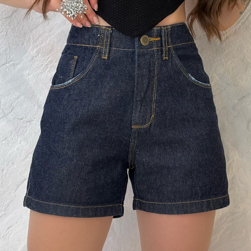 Short Jeans Feminino Cintura Alta Meia Coxa Boyfriend Algodão Premium Bermuda mom Estilo Blogueira