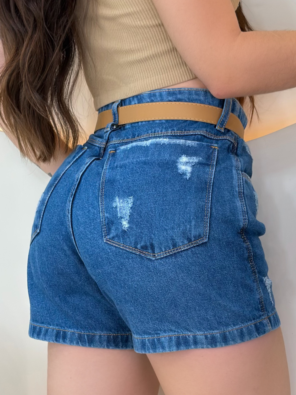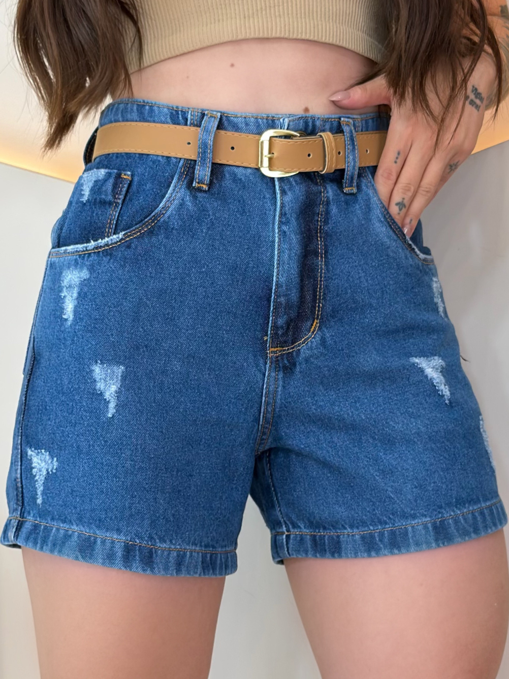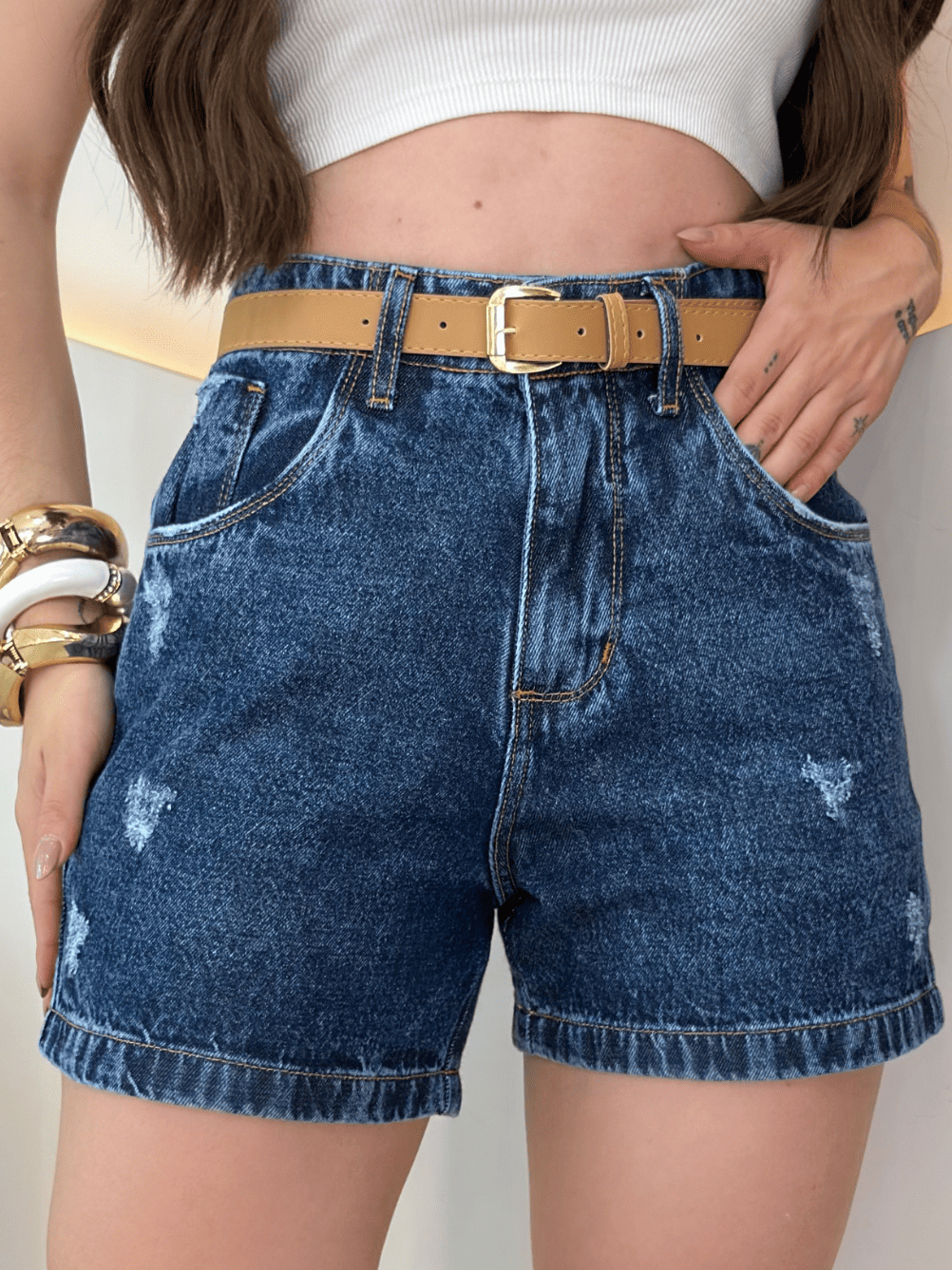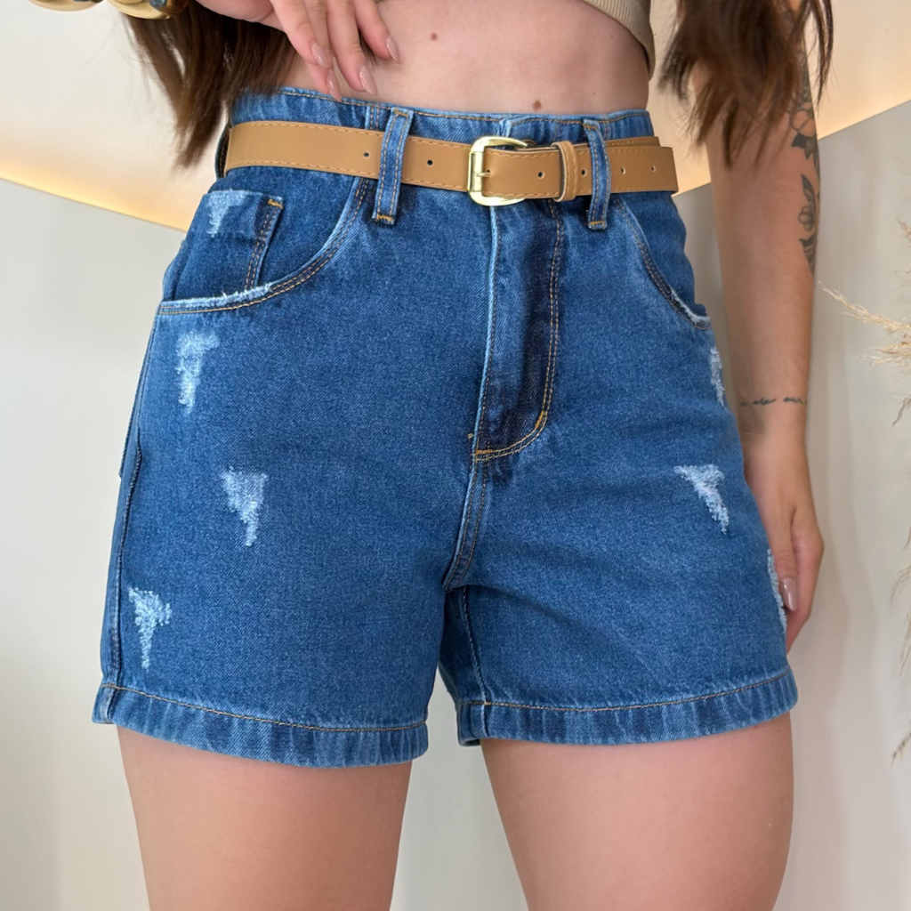 Short Jeans Feminino Cintura Alta Meia Coxa Com Cinto Boyfriend Bermuda jeans Feminina Verão Mom