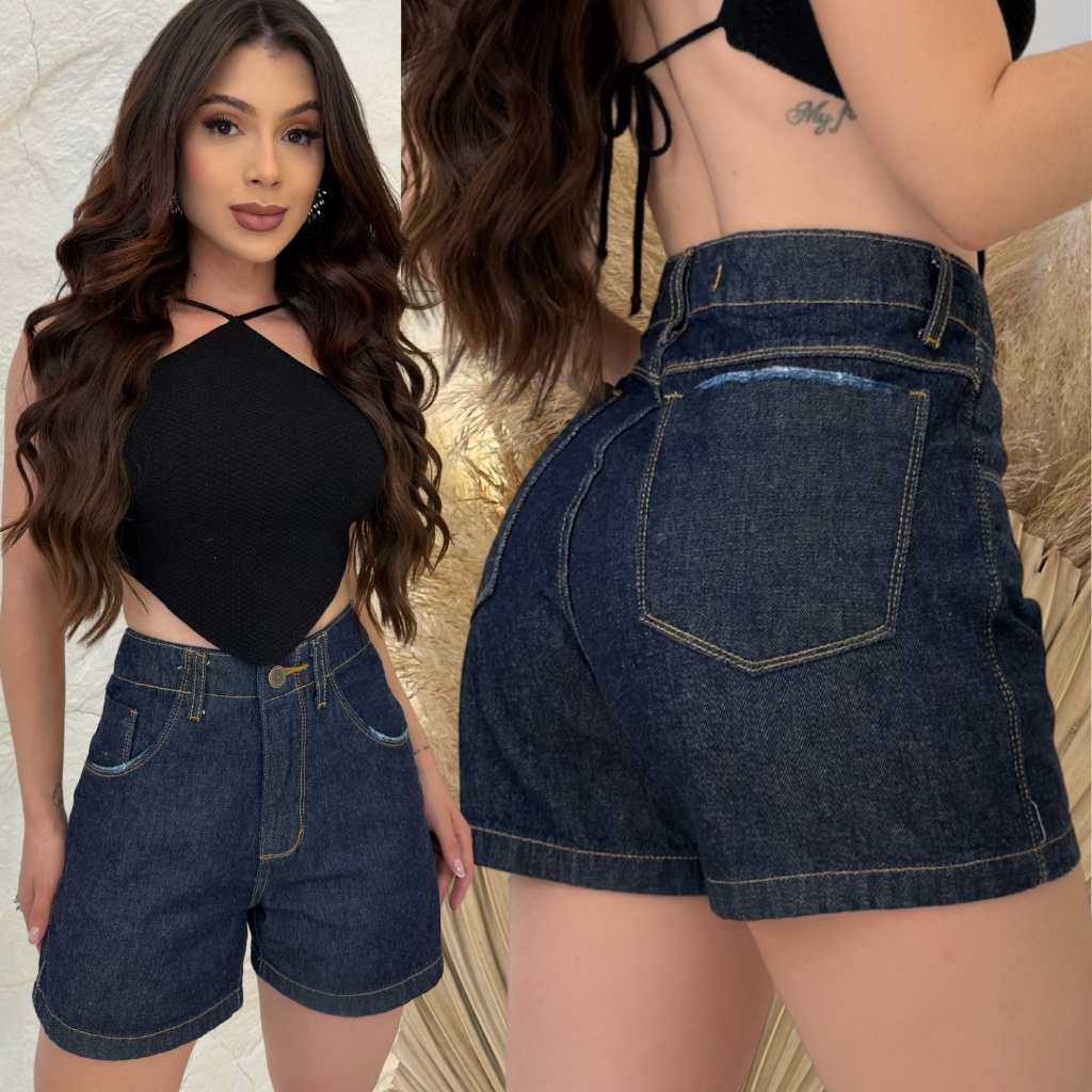 Short Jeans Feminino Cintura Alta Meia Coxa Boyfriend Bermuda feminina Estilo Blogueira 100% Algodão