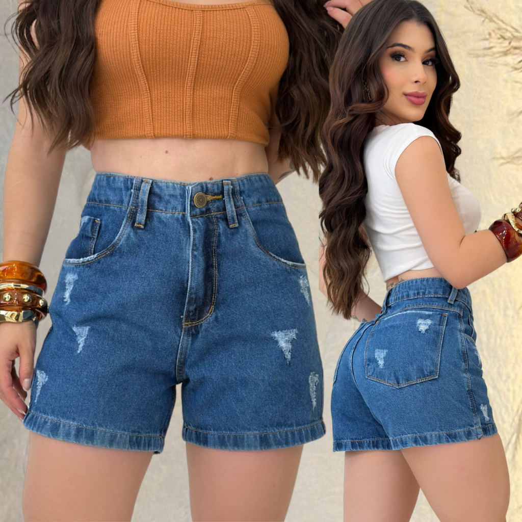 Short Jeans Feminino Boyfriend Cintura Alta Meia coxa Premium Casual Moda Verão Fashion bermuda Mom