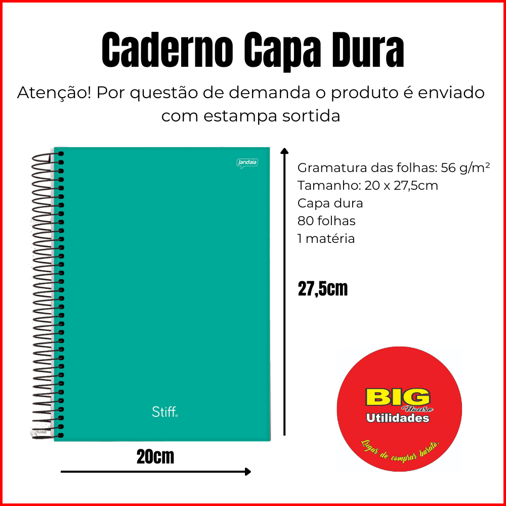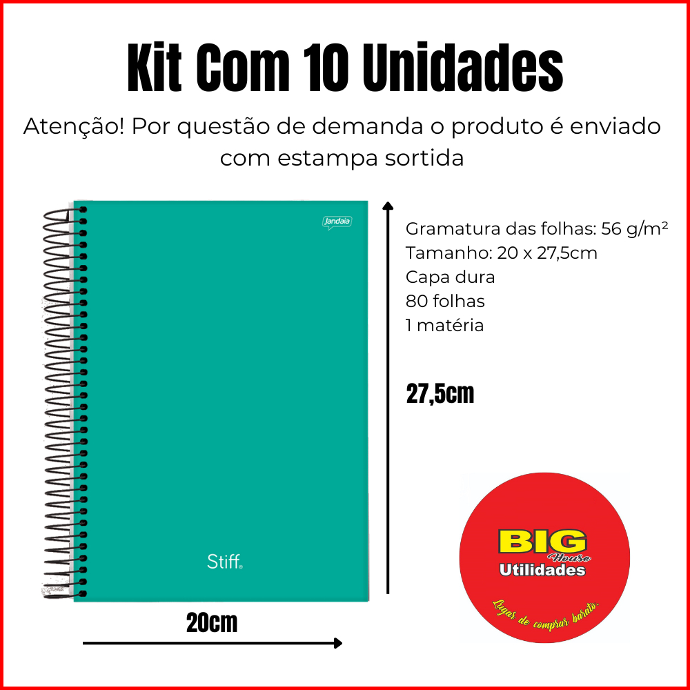 Kit 10 Cadernos Stiff Universitário 1 Matéria Jandaia 80 Folhas Capa Dura Grande