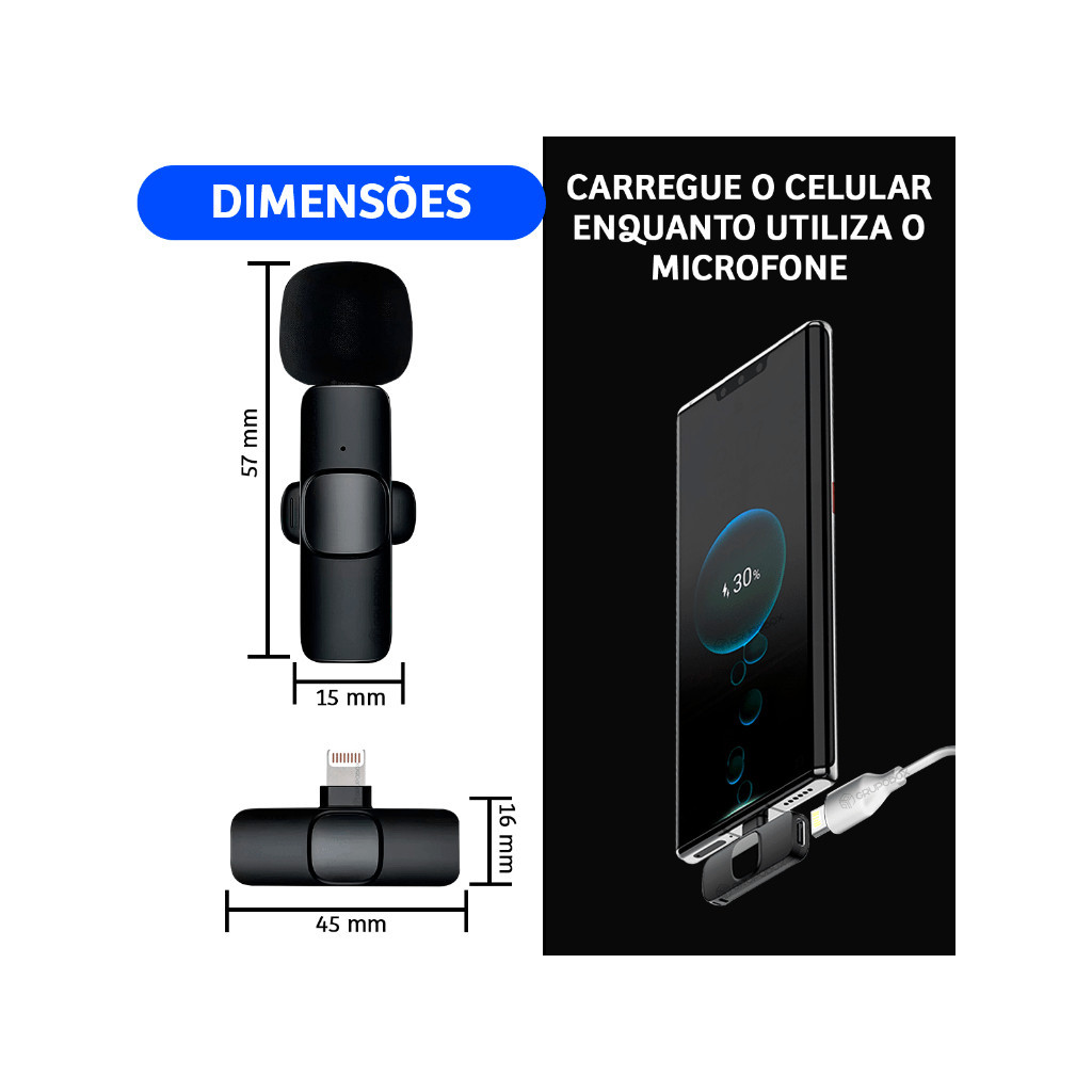Microfone Celular Lapela Sem Fio Iphone Profissional Karaokê 2 Microfone Para Celular Condensador