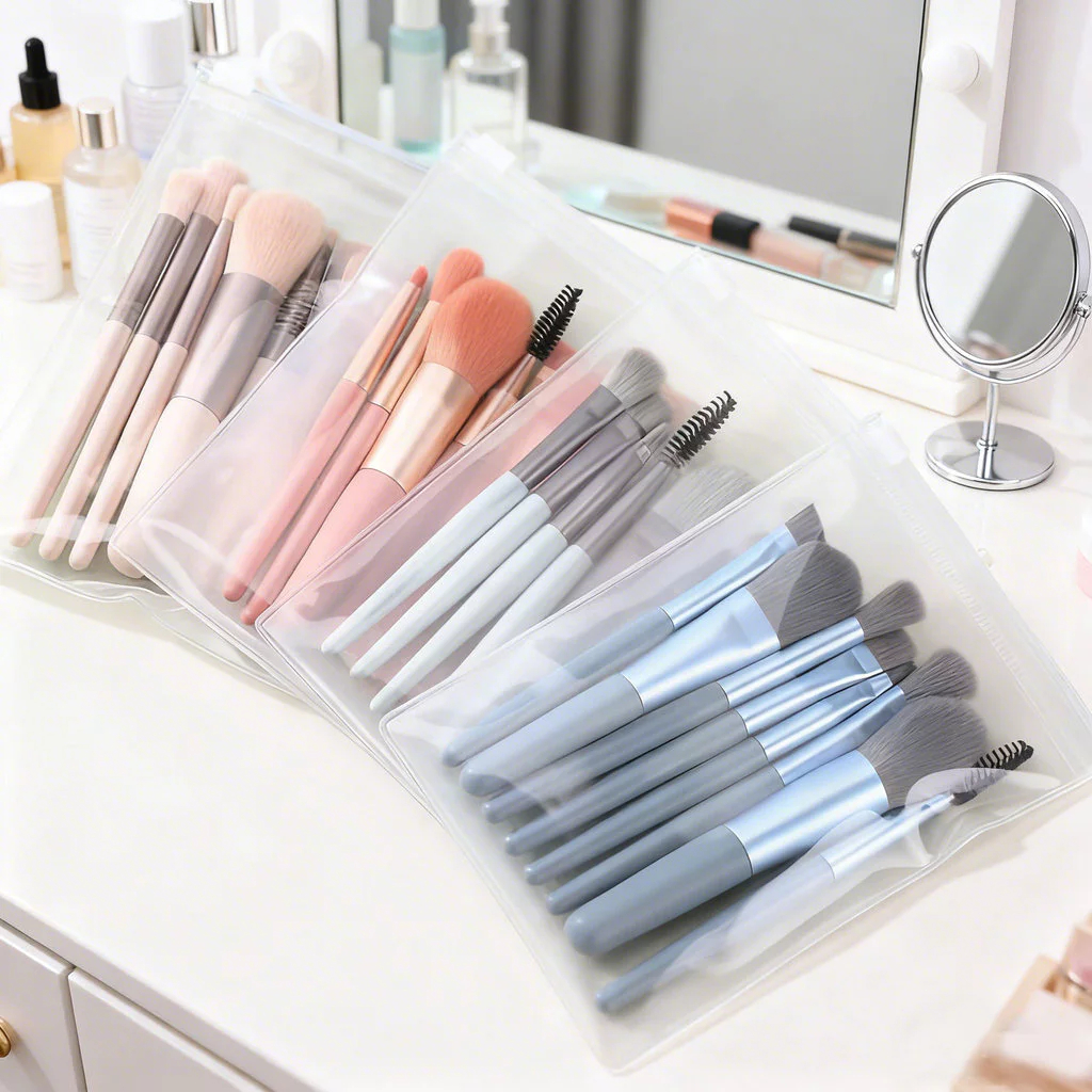 8 Peças Conjunto Pincéis De Maquiagem com Estojo Transparente Para Viagem de Madeira Fosco Ferramenta Portátil De Beleza