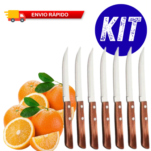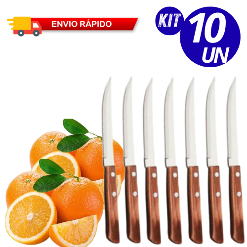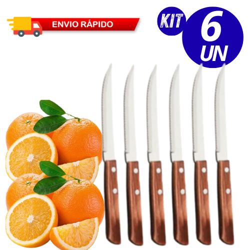 KIT FACAS DE COZINHA AÇO INOX TALHER GRANDE CABO MADEIRA DE SERRA RESISTENTE