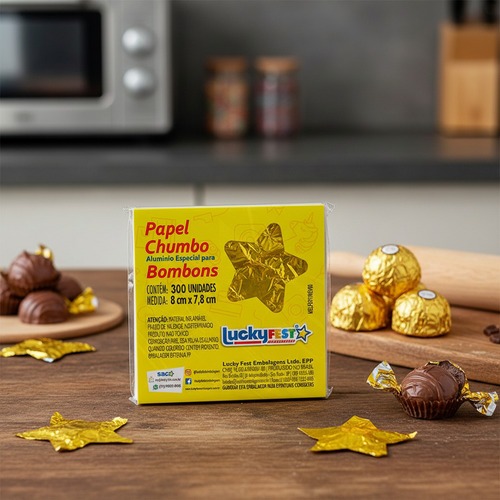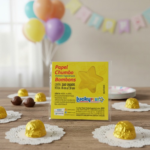 Papel Chumbo 8x7,8cm Bombom Trufa 300 Unidades Ouro Brilhante