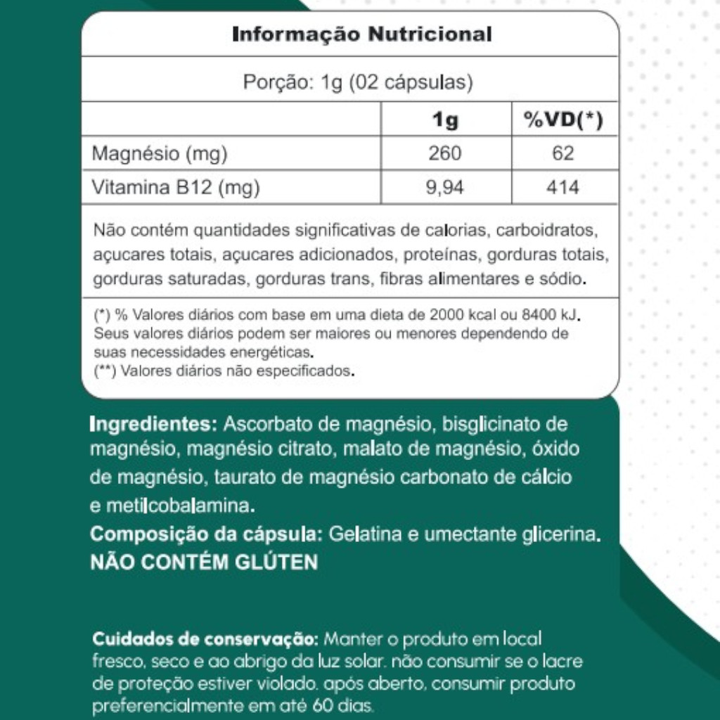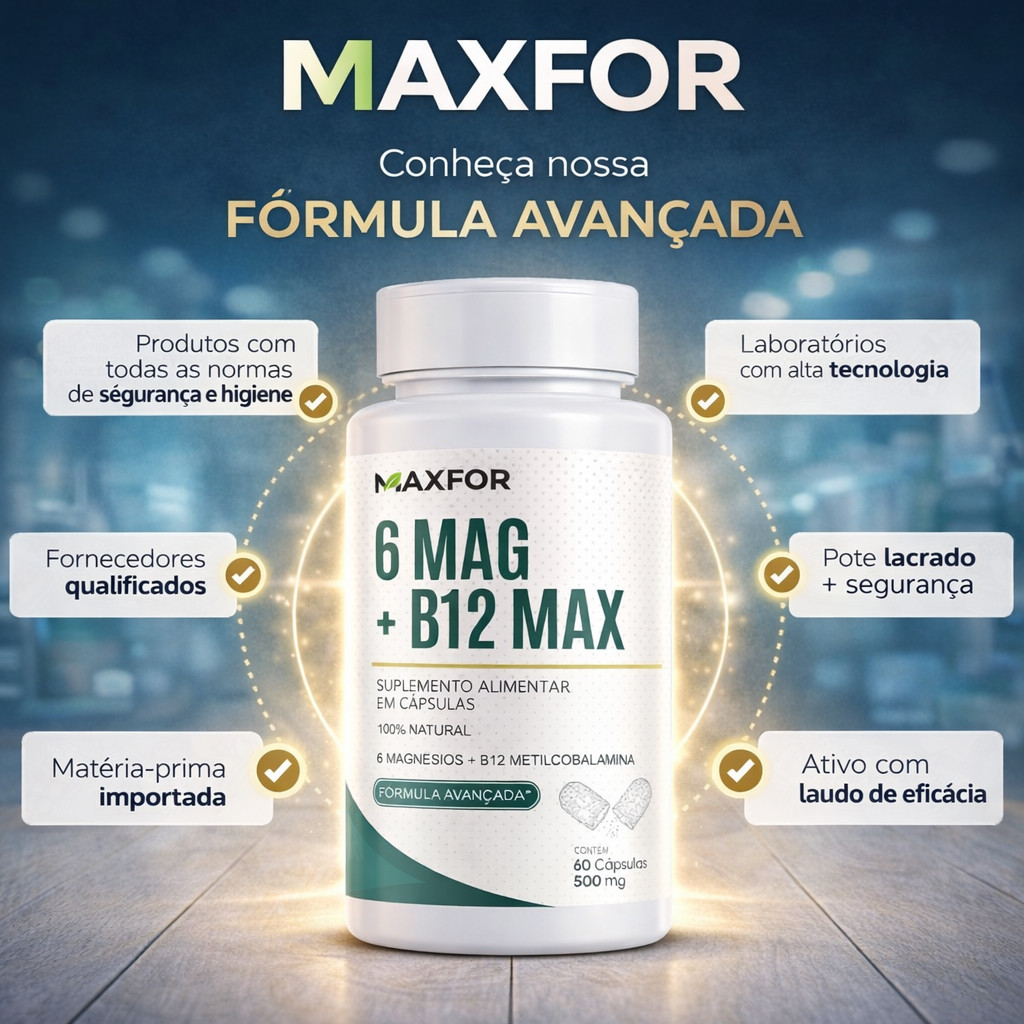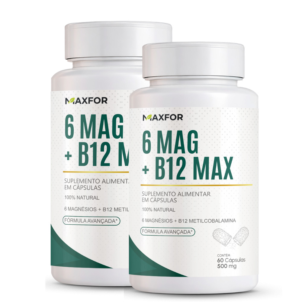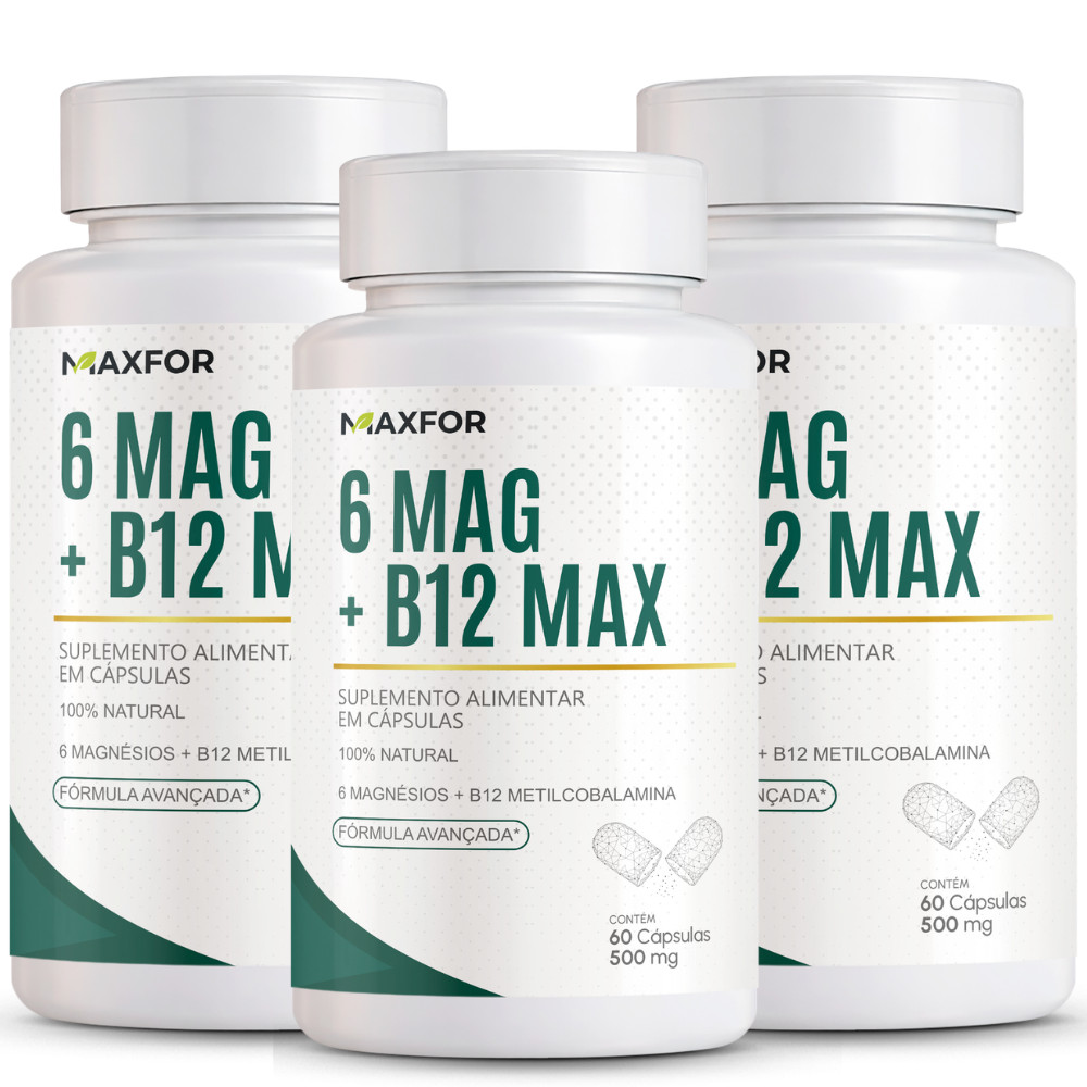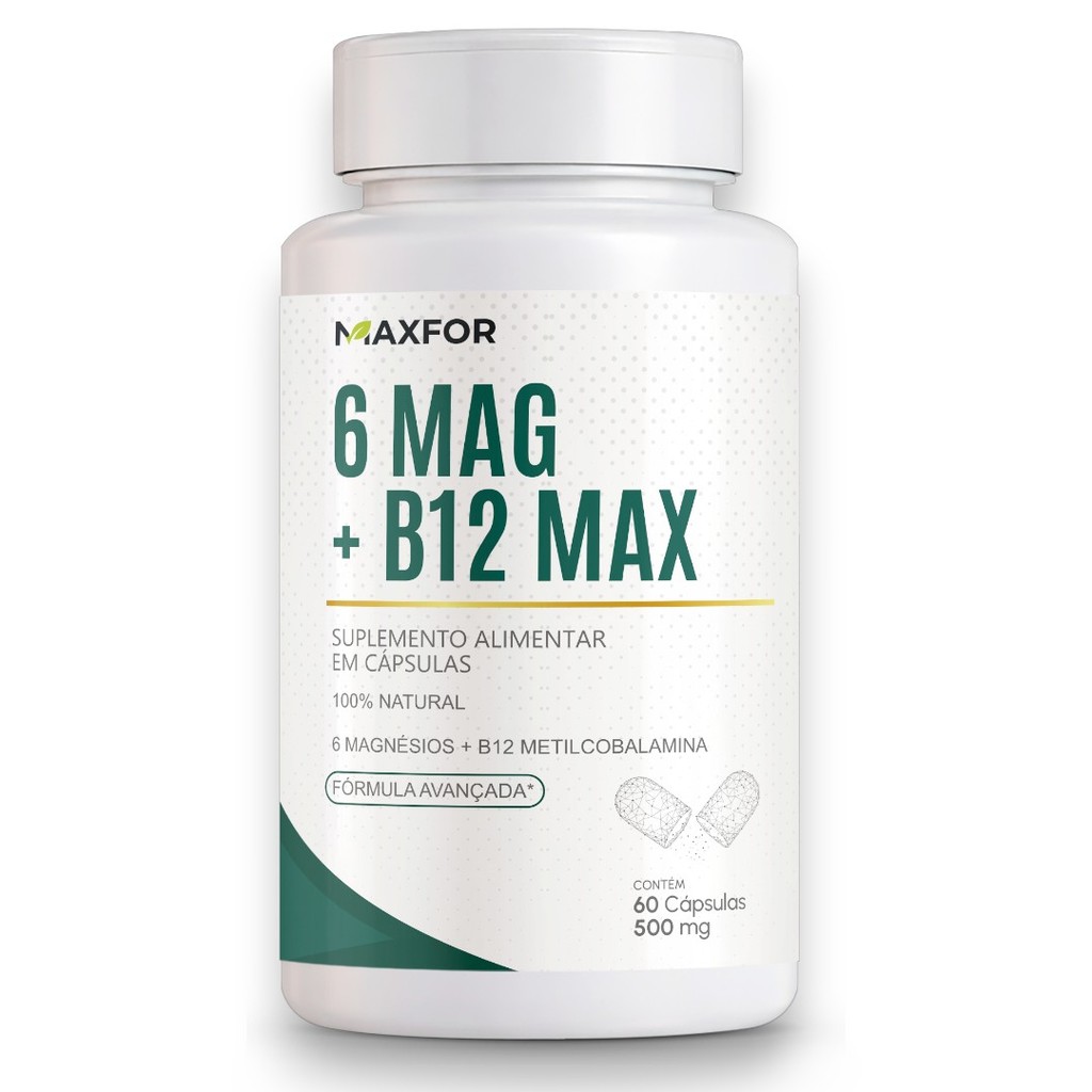 Vitamina B12 (Metilcobalamina) + 6 Magnésios 60 Cápsulas - Maxfor Suplemento Alimentar | Kit 1, 2 ou 3 Potes